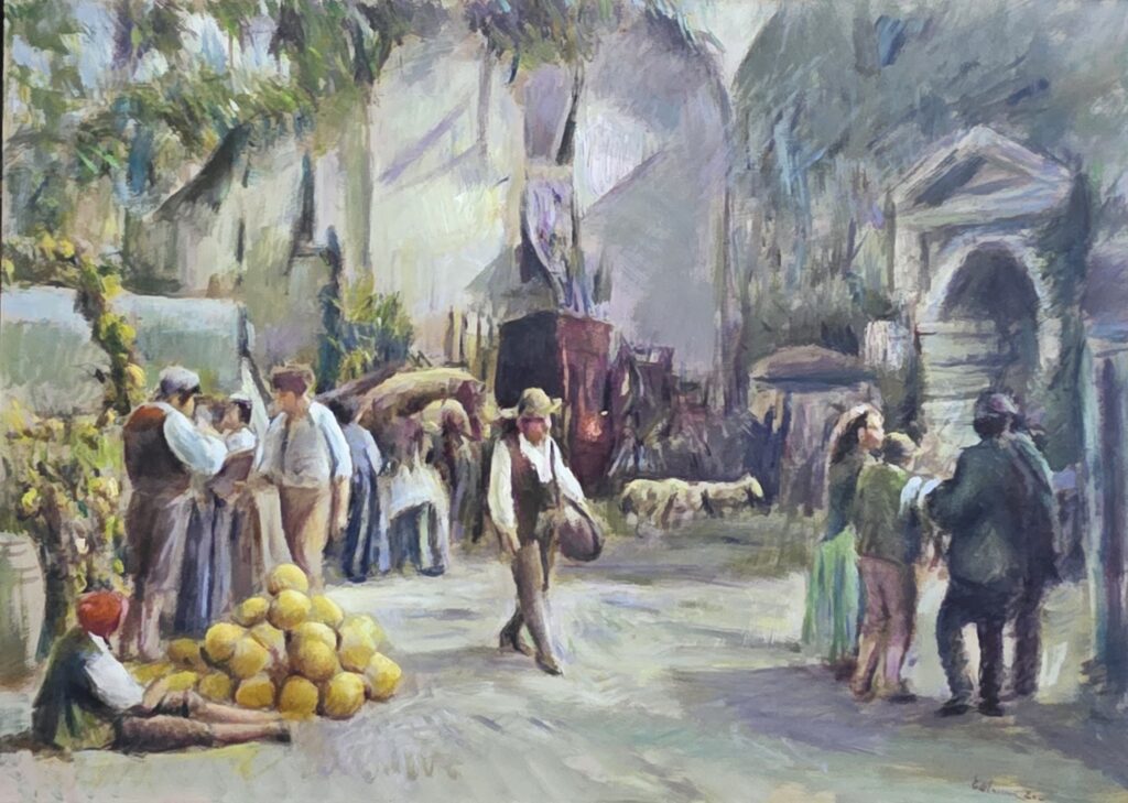 Antonio Manna (1947-2021)Scena di mercato.Cm.50 x 70