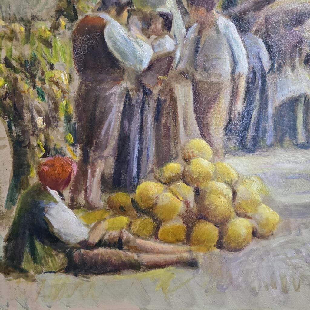 Antonio Manna (1947-2021)Scena di mercato.Cm.50 x 70 Misure: cm.50 x 70 Olio su pannello Mercato