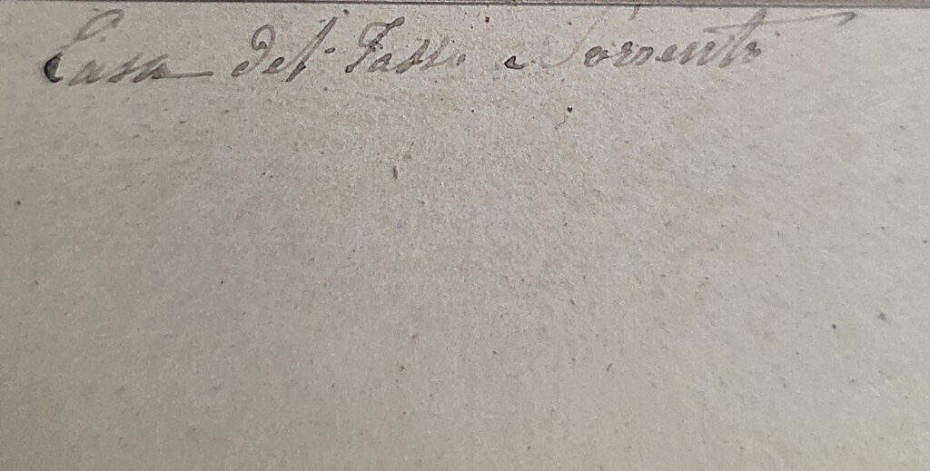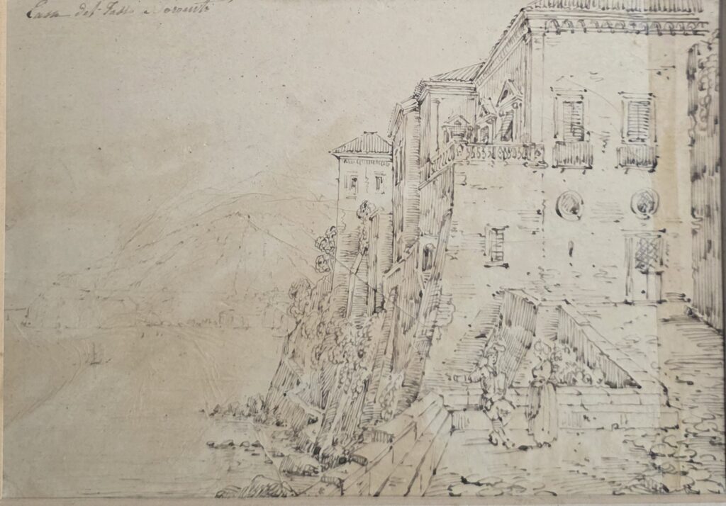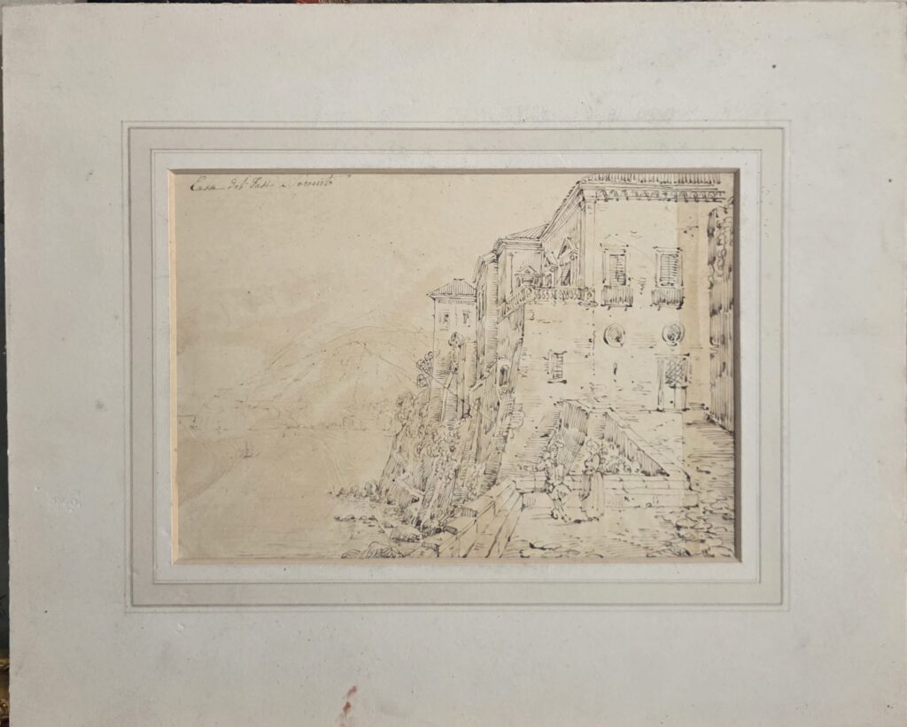 Antonio Senape (1788-1850).Casa del Tasso a Sorrento.Cm.17 x 24 Misure: cm.17 x 24 senza Misure: cm.31 x 38 Disegno a china su carta Casa del Tasso a Sorrento