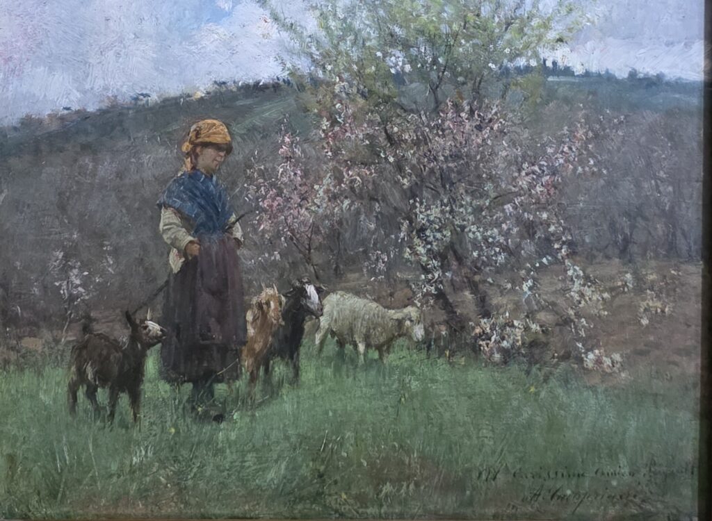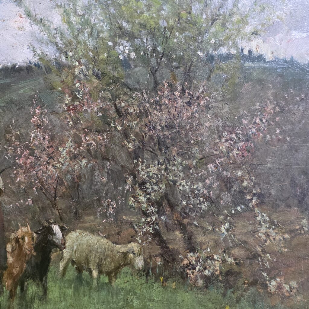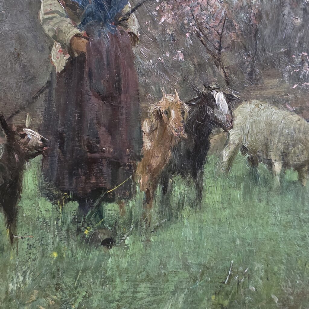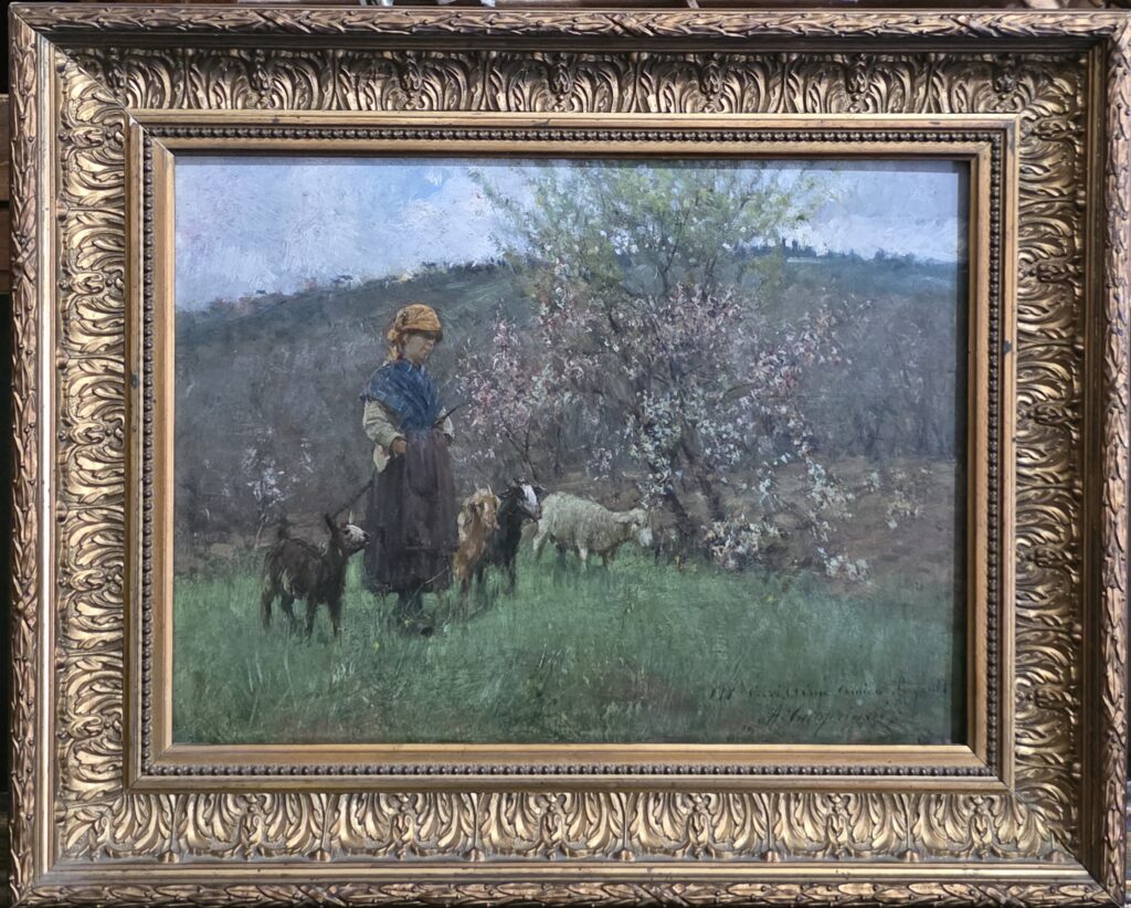 Lot 113 | Alceste Campriani (1848-1933).Pastorella con pecore.Cm.26 x 35