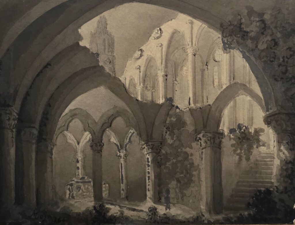 Federico Moja (1802-1885).Attr.a.Interno di Abbazia.Cm.13 x 16,5