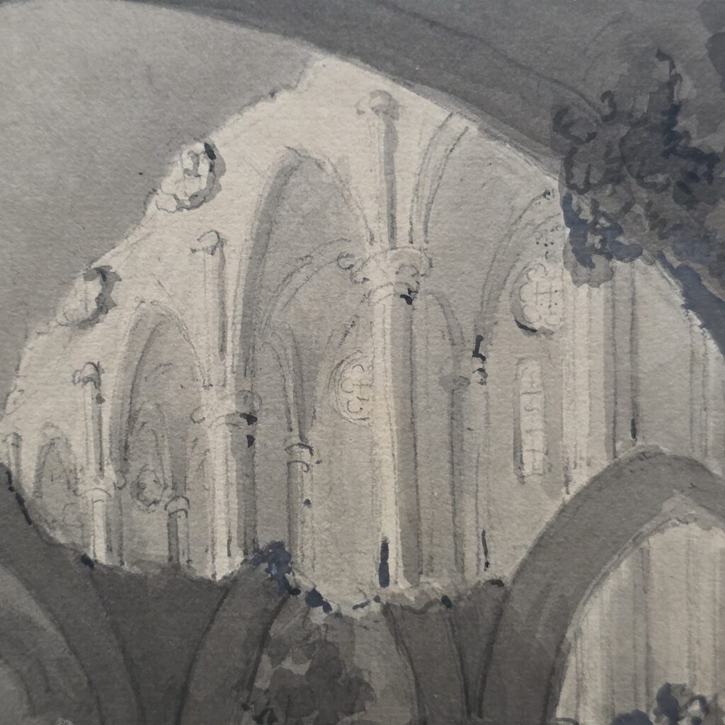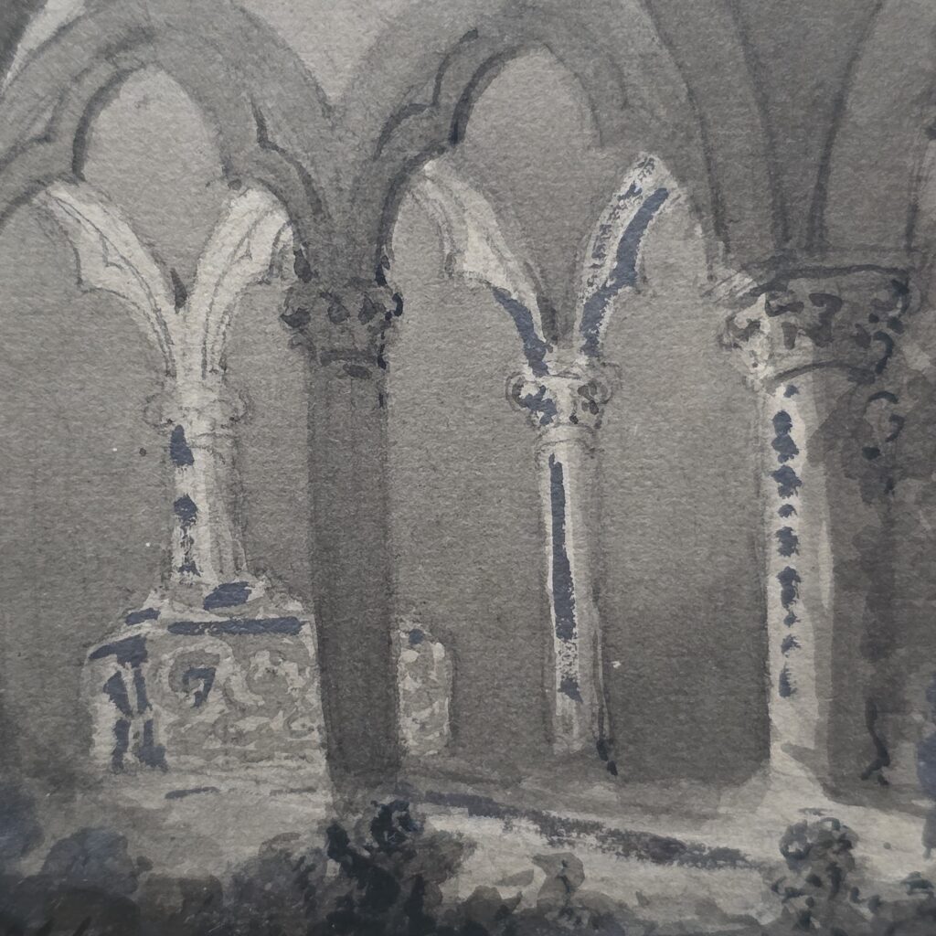 Federico Moja (1802-1885).Attr.a.Interno di Abbazia.Cm.13 x 16,5 Misure: cm.13 x 16,5 Acquerello su carta. Interno di Abbazia Firma in basso a sinistra Moja 1866