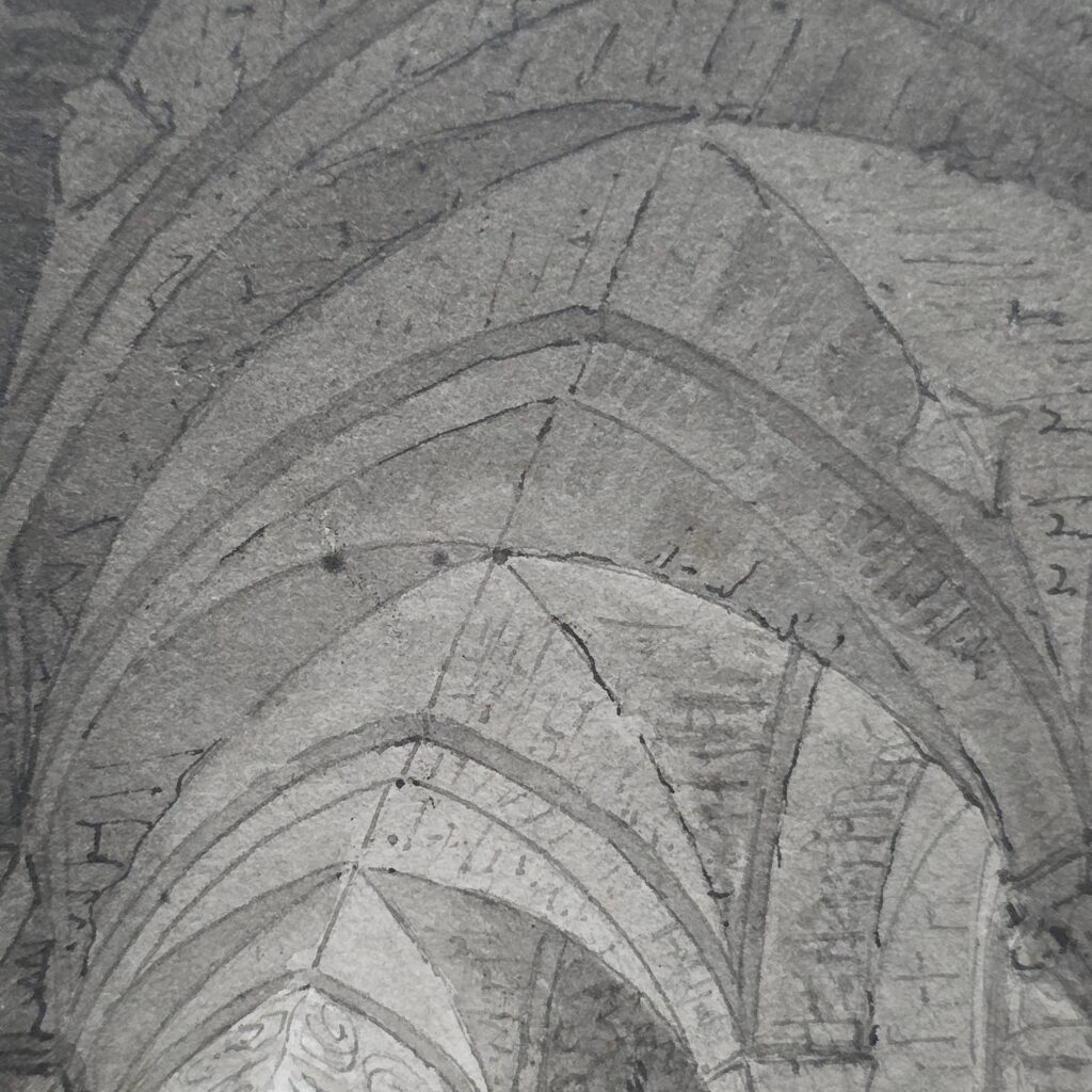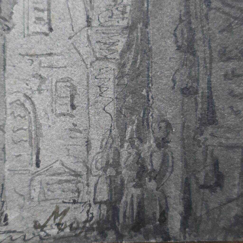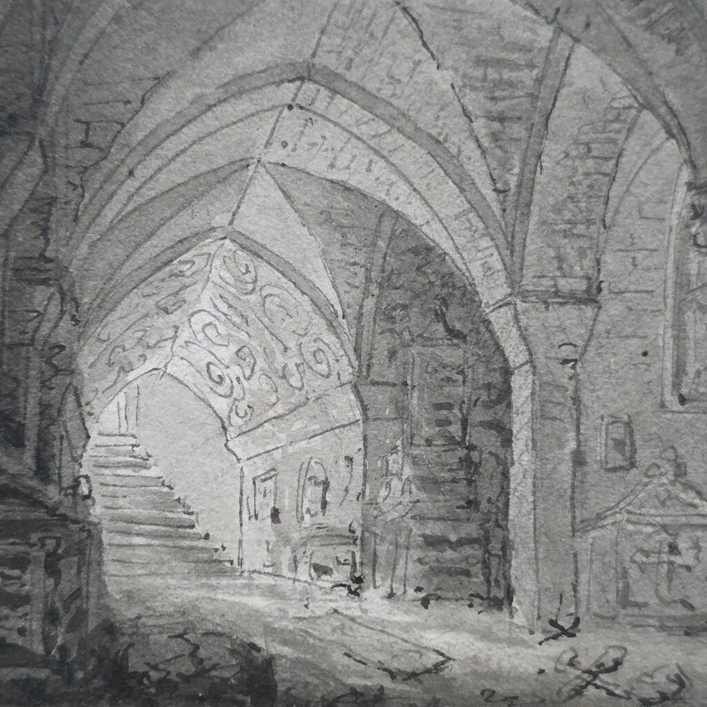 Federico Moja (1802-1885).Attr.a Interno di abbazia.Cm.13,5 x 15,5
