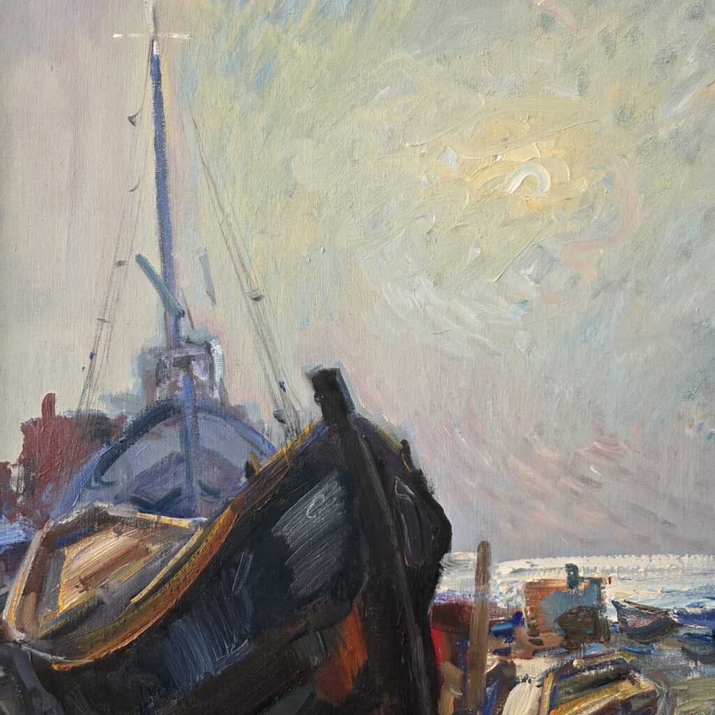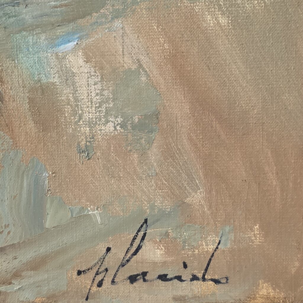Errico Placido (1909-1983).Barche in sosta.Cm.100 x 100 Misure: cm.100 x 100 senza cornice Misure: cm.103 x 103 con cornice Olio su tela Barche in sosta Firma in basso a destra Placido