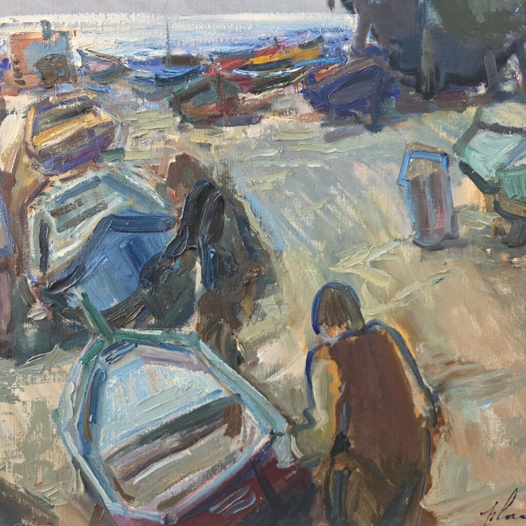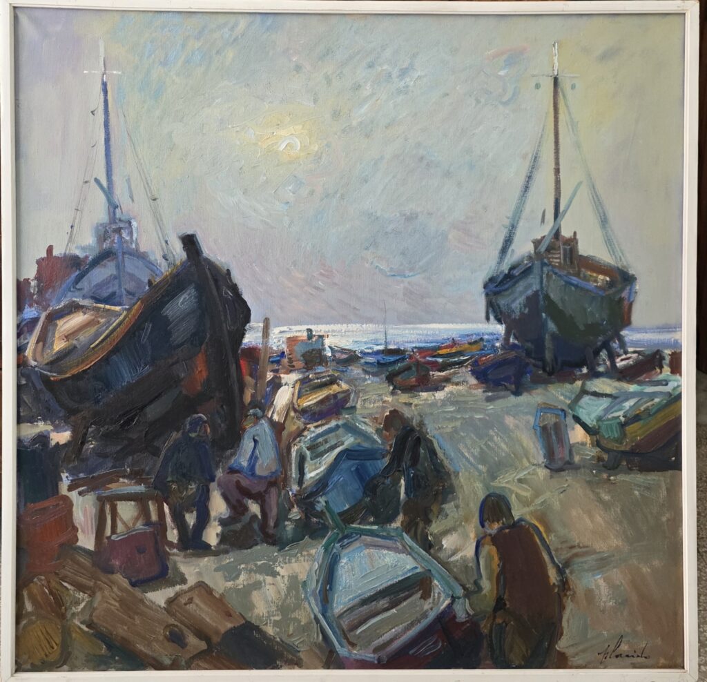 Errico Placido (1909-1983).Barche in sosta.Cm.100 x 100