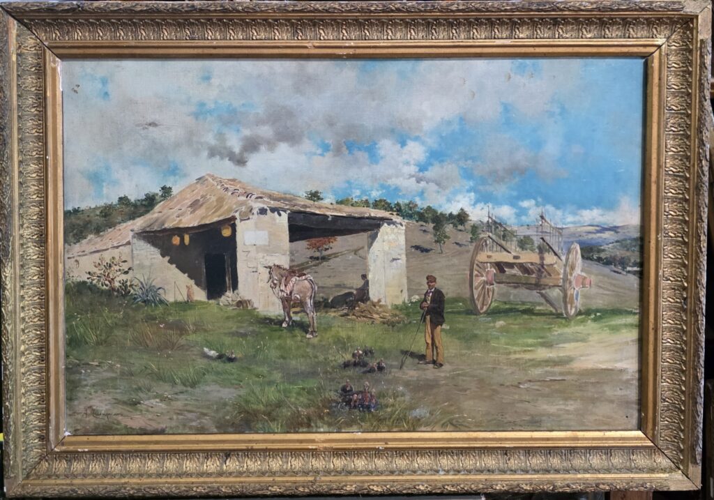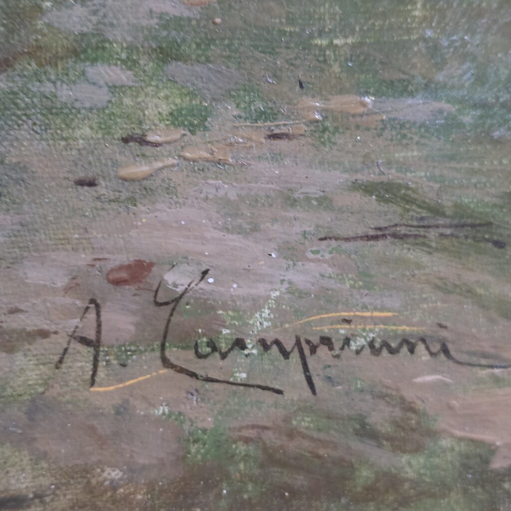 Alceste Campriani (1848-1933).Paesaggio. Cm.40 x 60 Misure: cm.40 x 60 senza cornice Misure: cm.49 x 69 con cornice Olio su tela. Paesaggio Firma in basso a sinistra A.Campriani