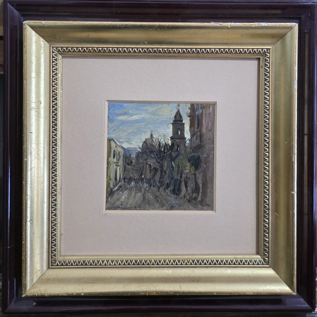 Antonio Asturi (1904-1986) Paesaggio.Cm.12 x 12 Misure: cm.12 x 12 senza cornice Misure: cm.33 x 33 con cornice Olio su cartoncino Paesaggio Firma in basso a sinistra Asturi A.