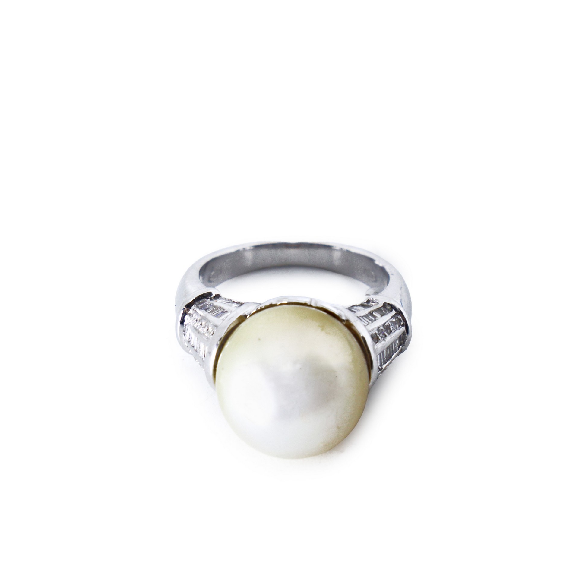 Anello in oro bianco 18 kt con diamanti taglio brillante e perla Oro Gr 6,10 peso totale Gr 9,30 Brillanti kt 0,86, perla australiana kt 15,32