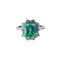 Anello in oro bianco con berillo (varietà smeraldo) di forma rettangolare formato a gradino con diamanti intorno