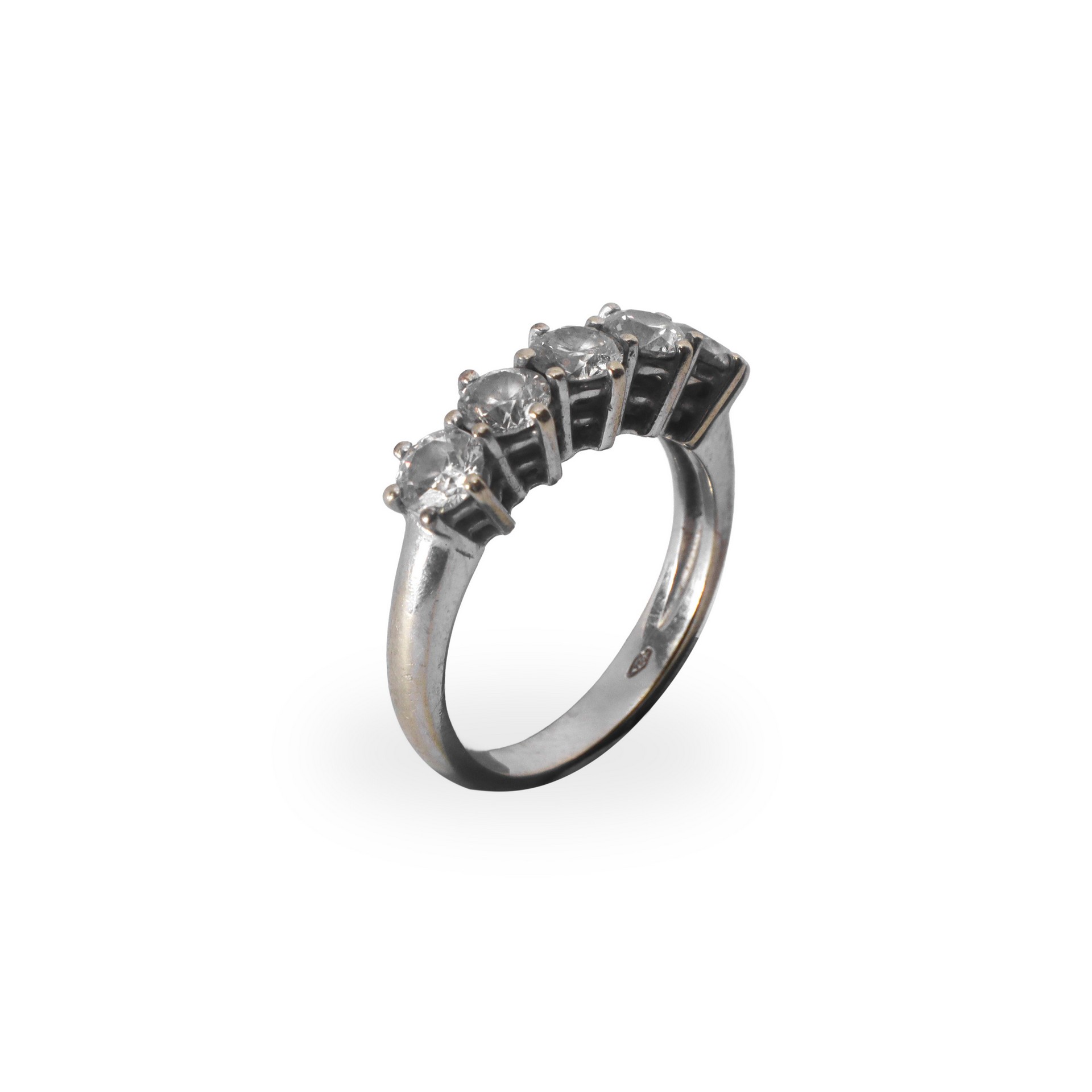 Veretta di diamanti mis. 13 (53) ct 1,5 mis. ind. per le 5 gemme peso tot (gemme+oro) 5,01 gr Analisi gemmologica: forma rotonda taglio brillante, dimensione media 4,25-2,67 mm., colore G-H, purezza VS. I parametri sono rilevati a pietre incassate