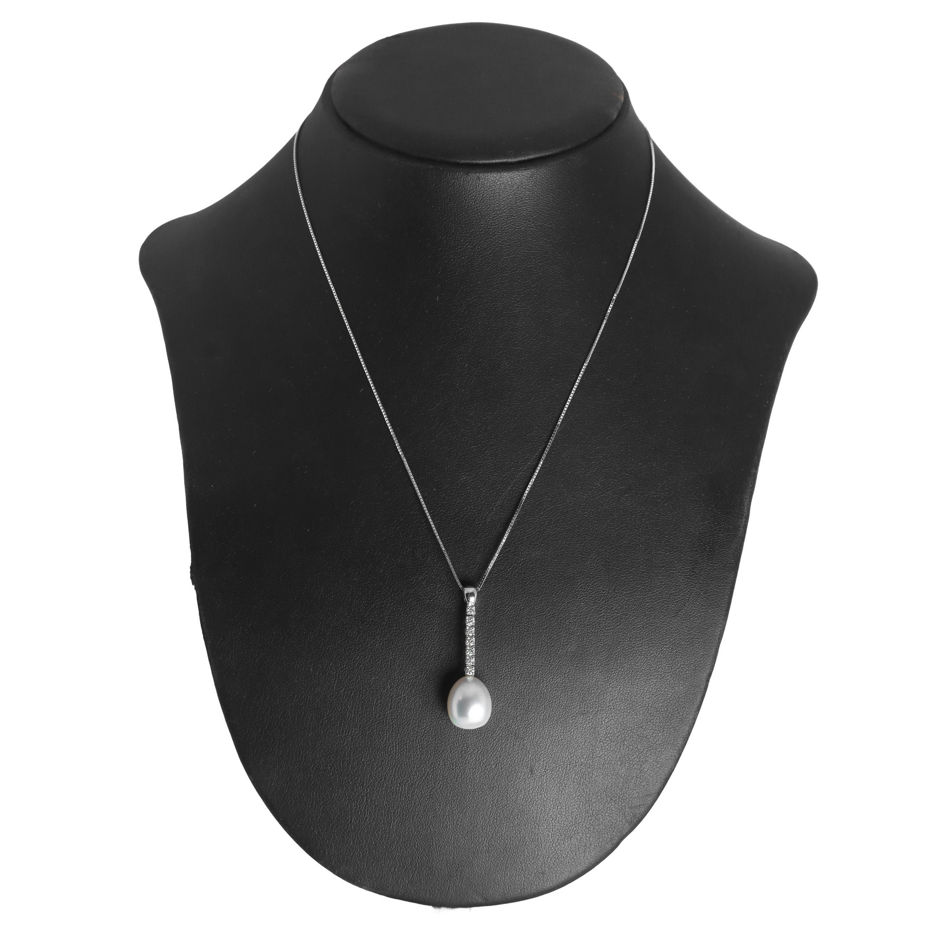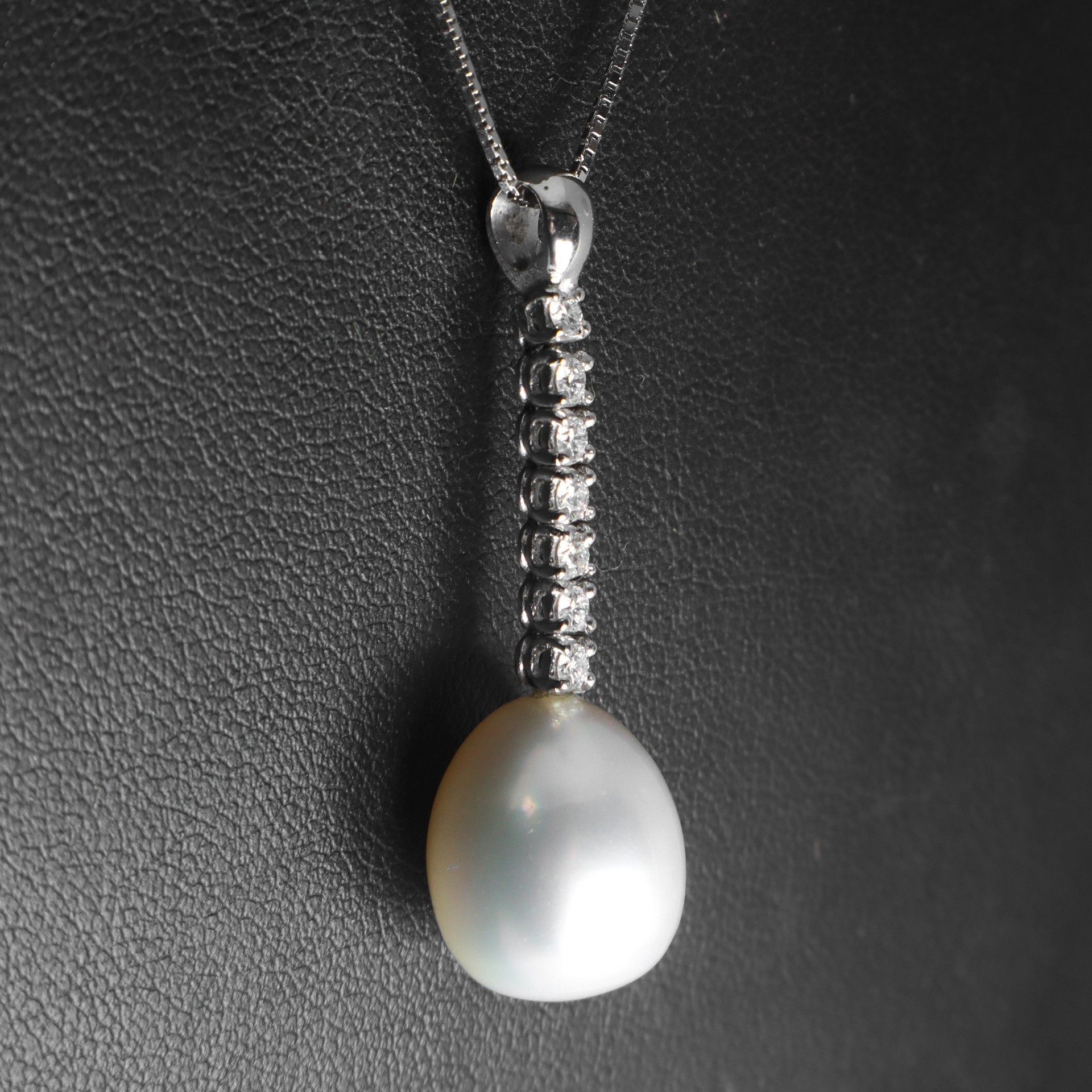 Collana in oro bianco 18 kt con brillanti 0,40 kt volore G , purezza VS, perla drop australiana 25 kt