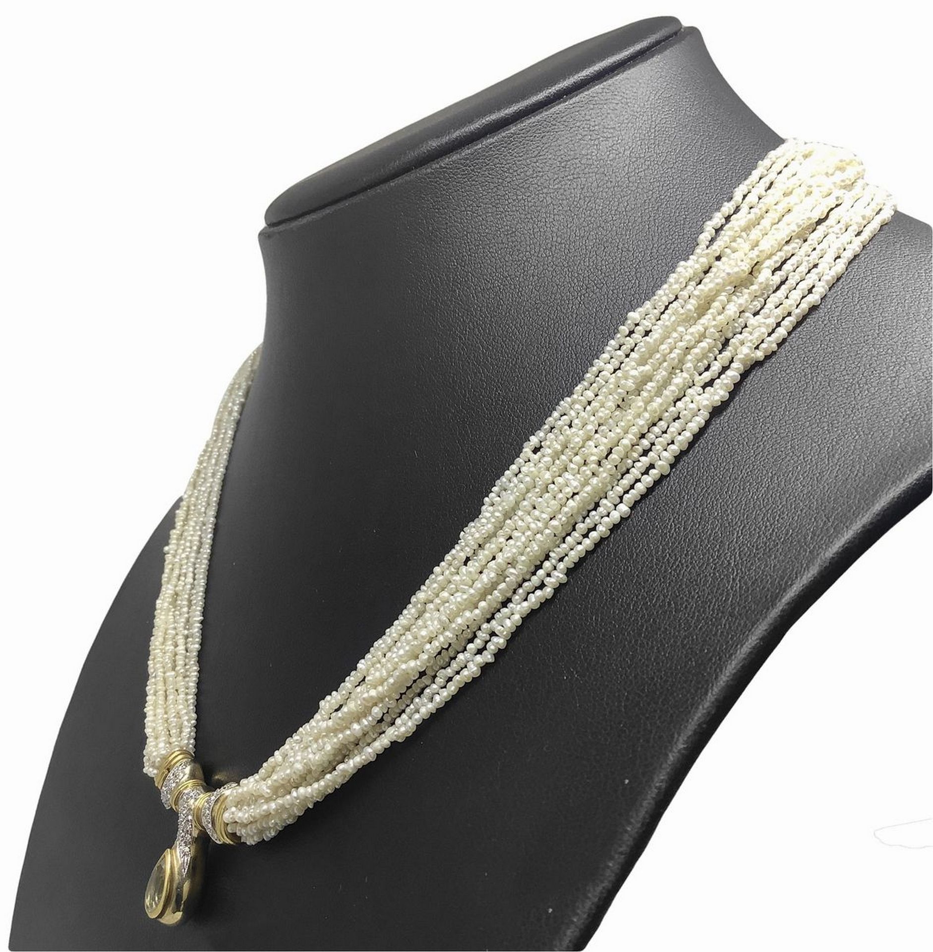 Lot 56 | Collana con perle orientali naturali e chiusura centrale con brillanti ca 0,83 ct ed acquamarina ca 2.10 ct