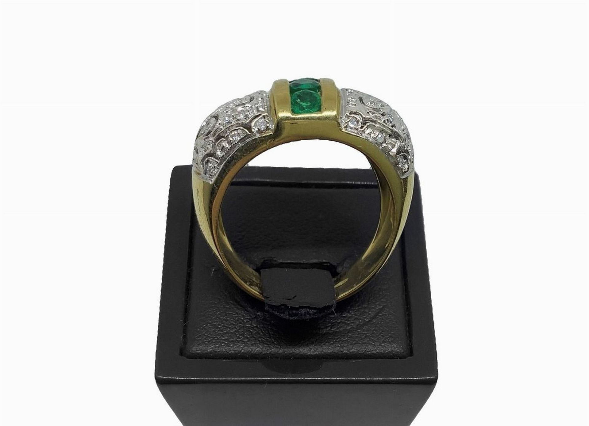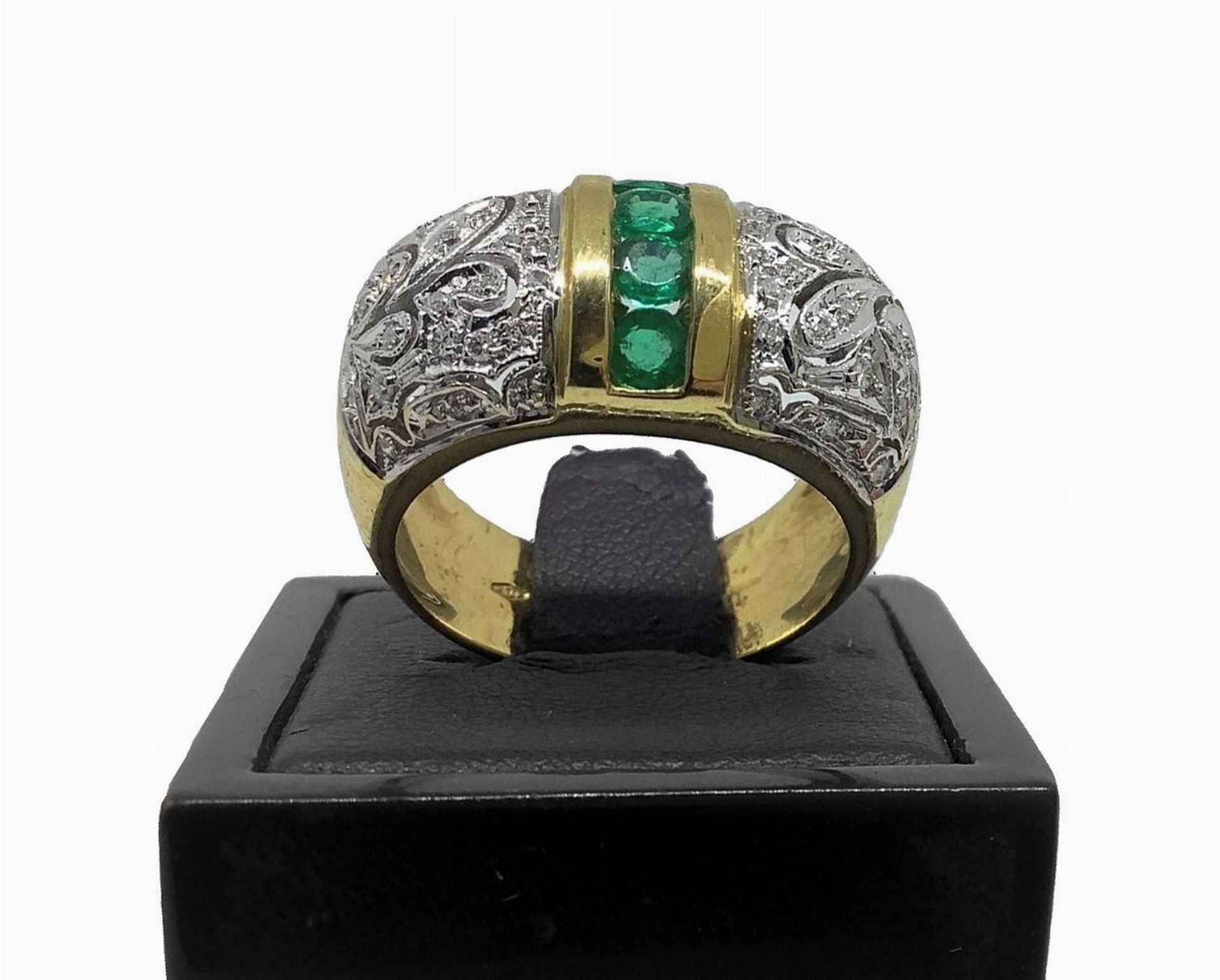 Anello in oro giallo con brillanti e smeraldi Brillanti ca 0.30 ct, smeraldi ca 0.50