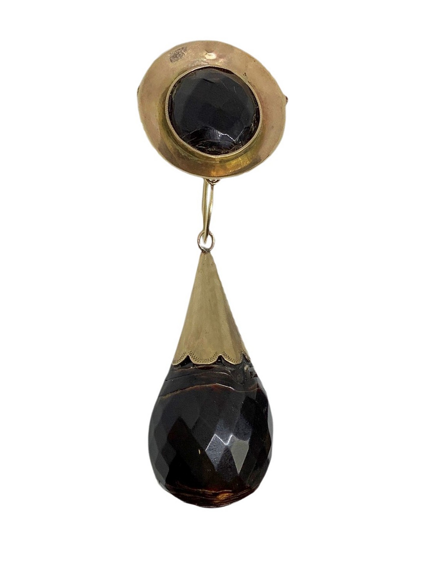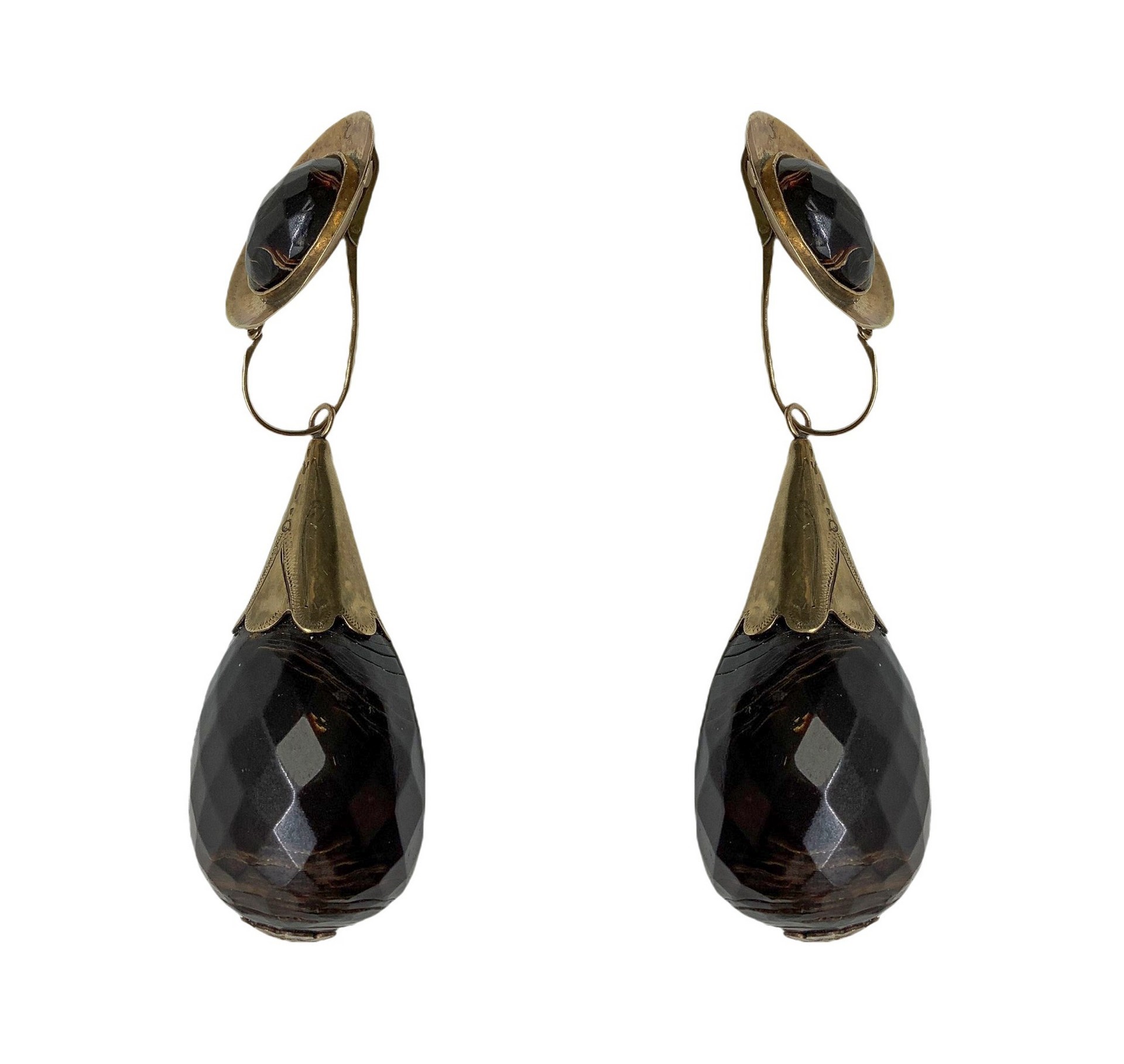 Antichi orecchini pendenti in oro rosso e ambra sfaccettata del Simeto