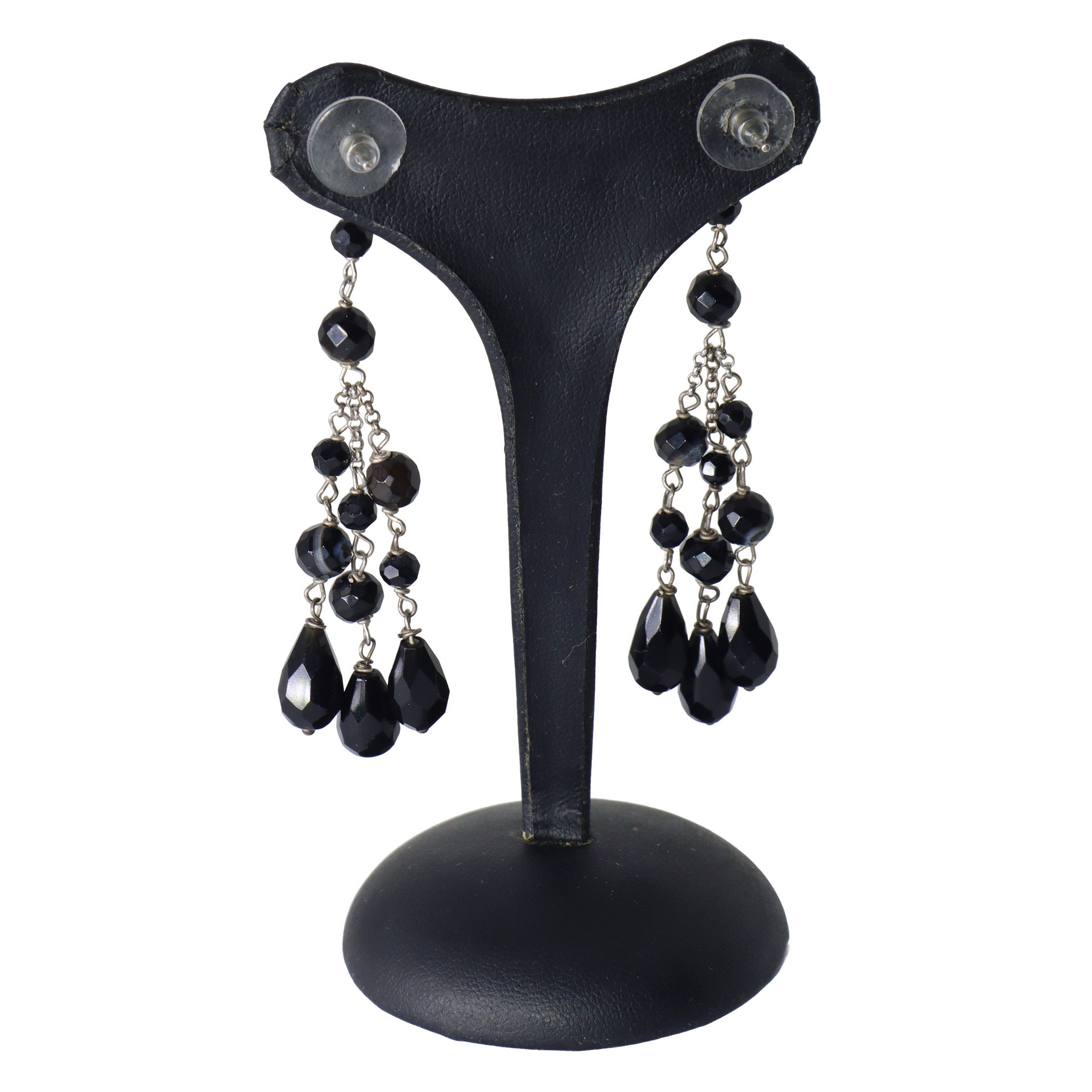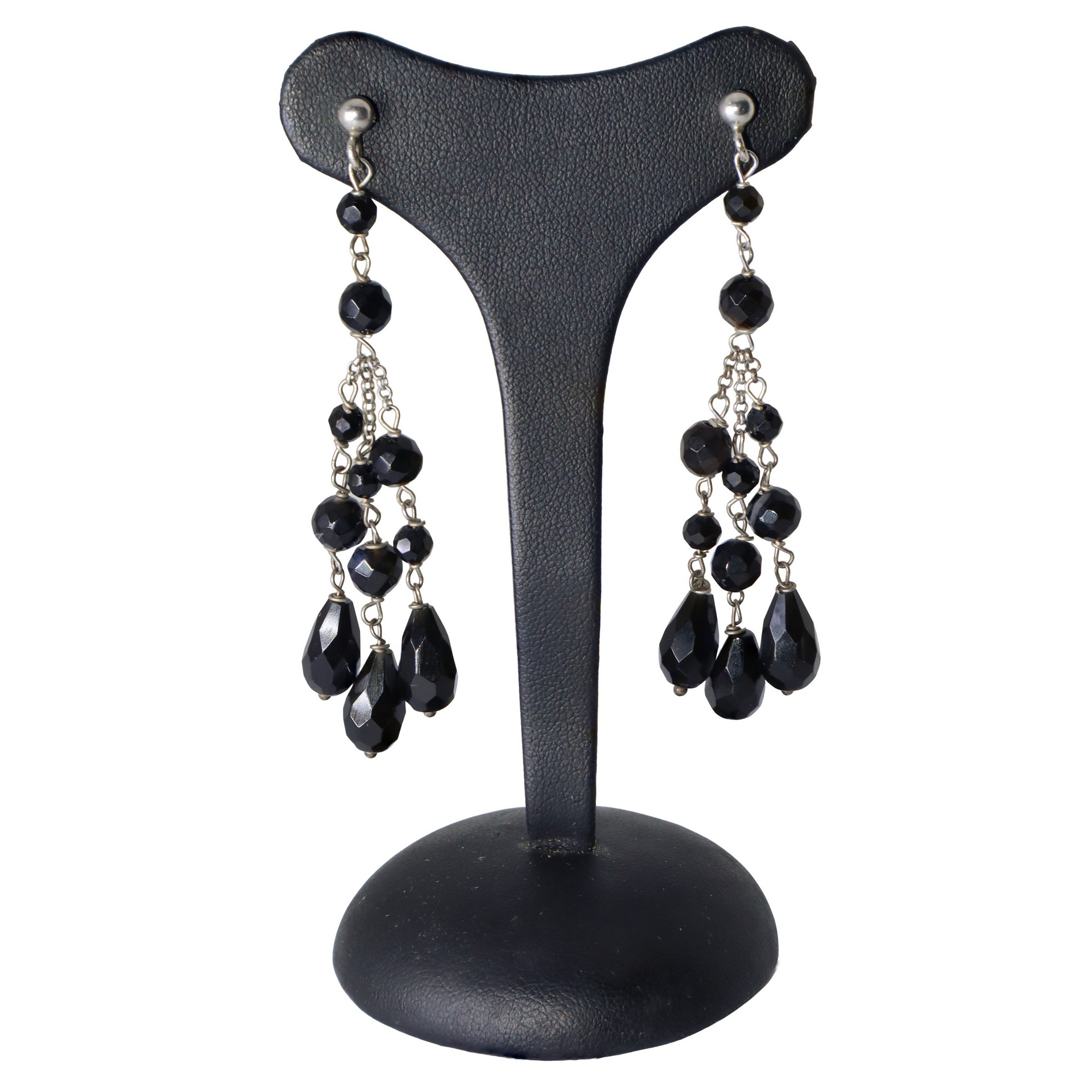 Orecchini pendenti in argento 925 e grani in onice cm 7,5 gr.10