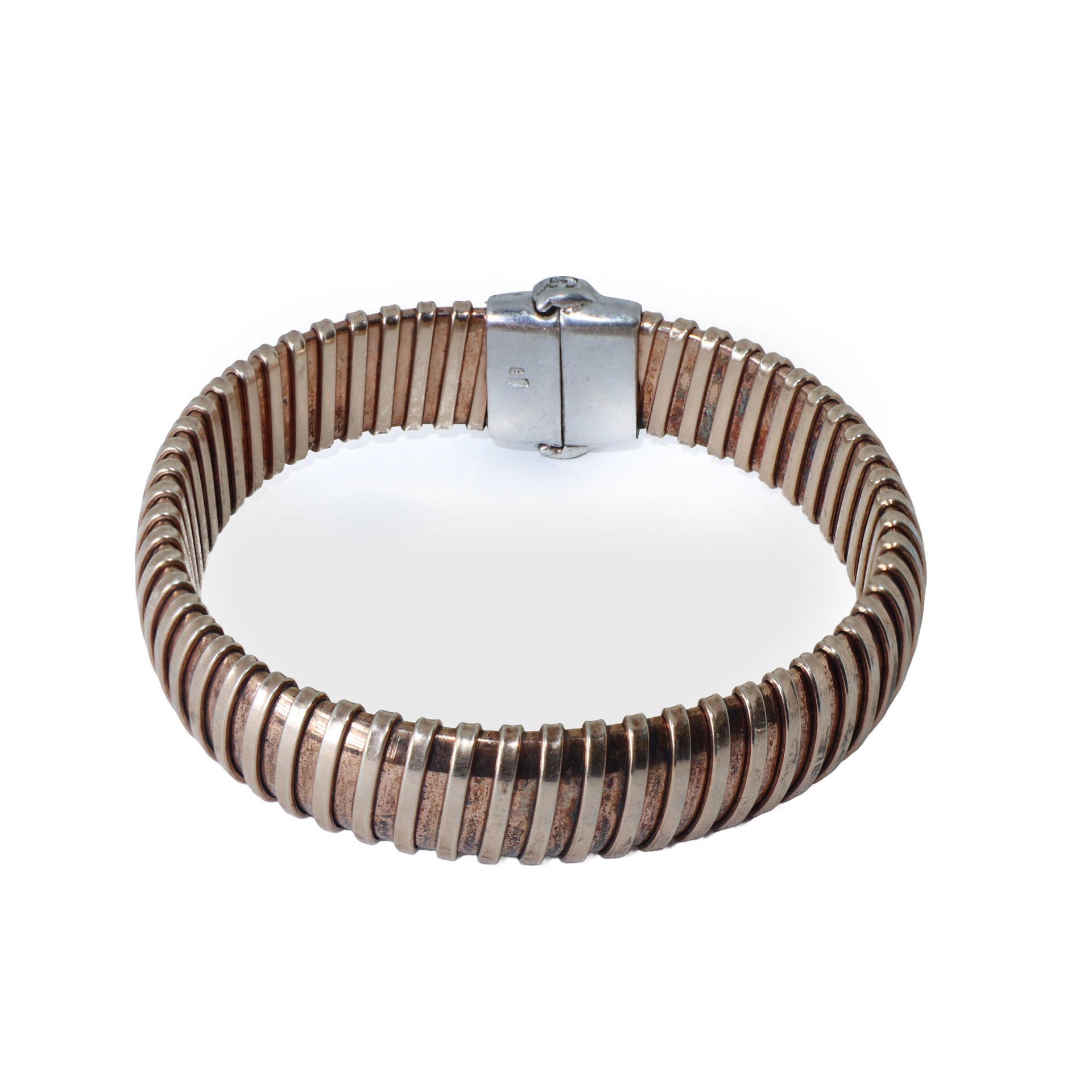 Bracciale tubogas in argento 925 con chiusura a calamita dorato e argento con strass sulla chiusura cm 19 gr.20,8 punzone 800 sul retro della chiusura