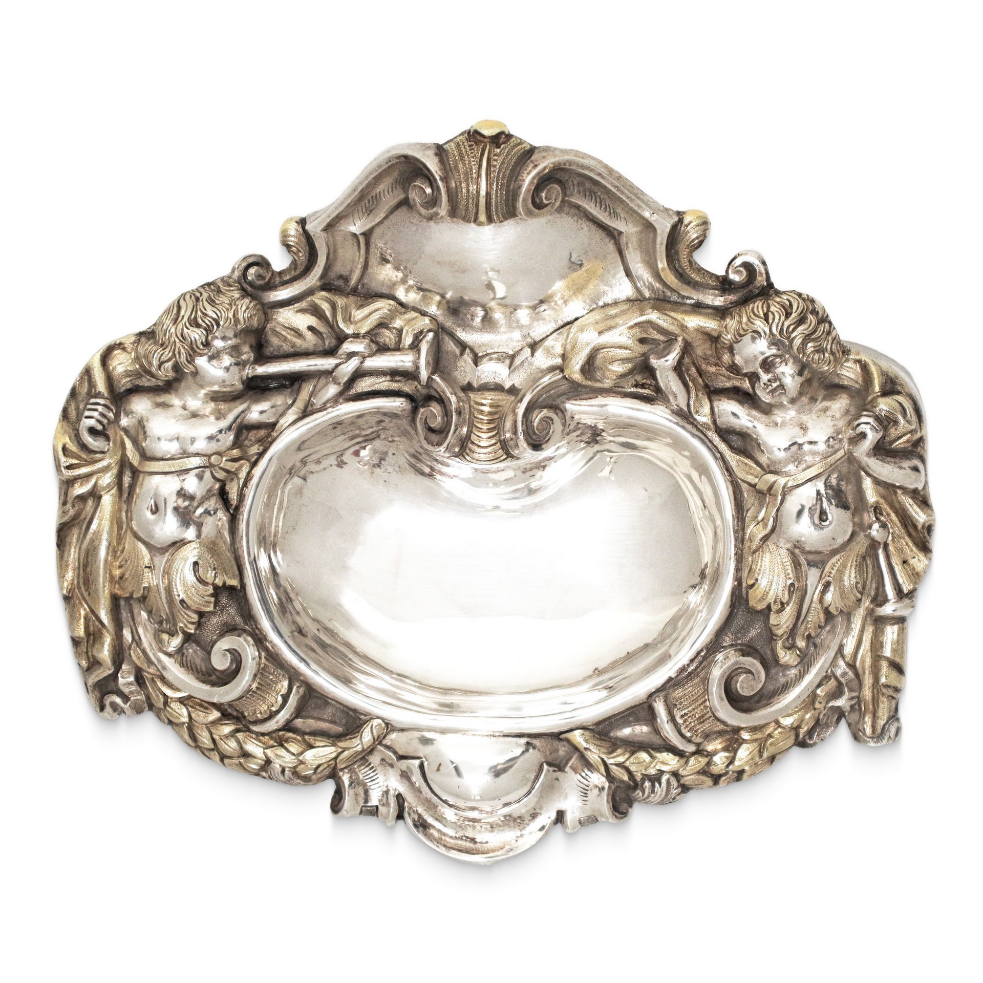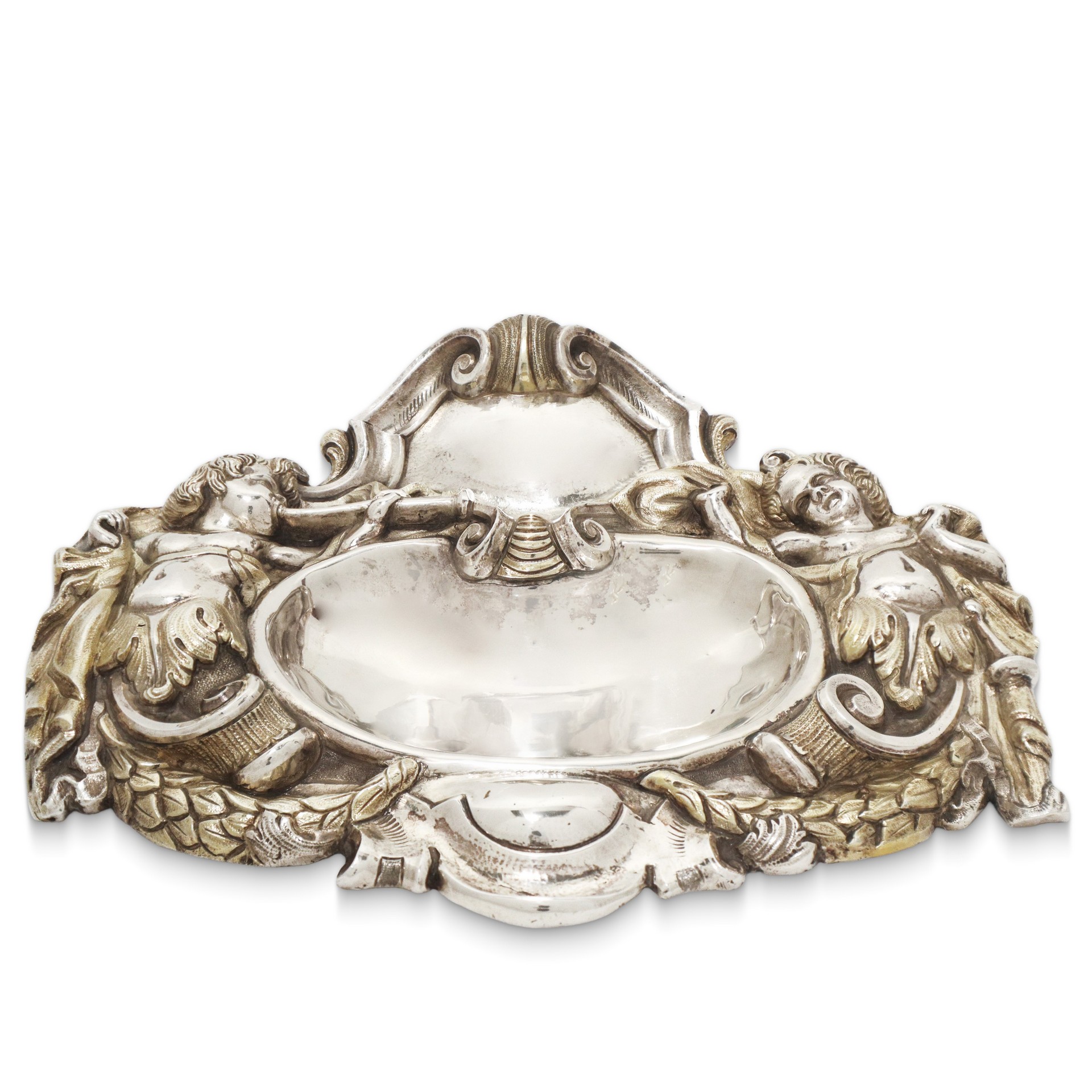 Calamaio in argento con putti musicanti ai lati h cm 6X20,5 gr.802 Punzoni laterali