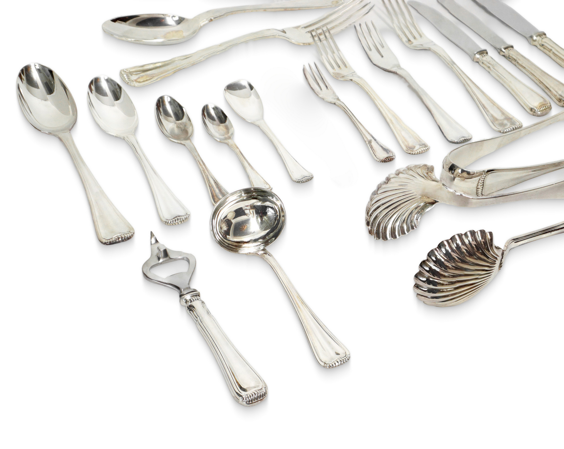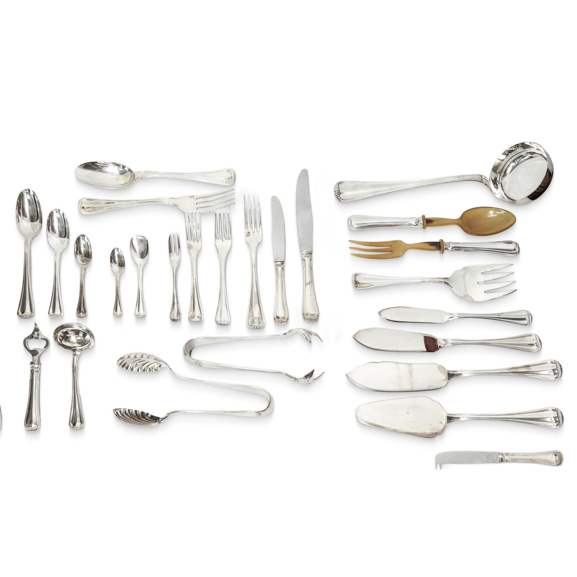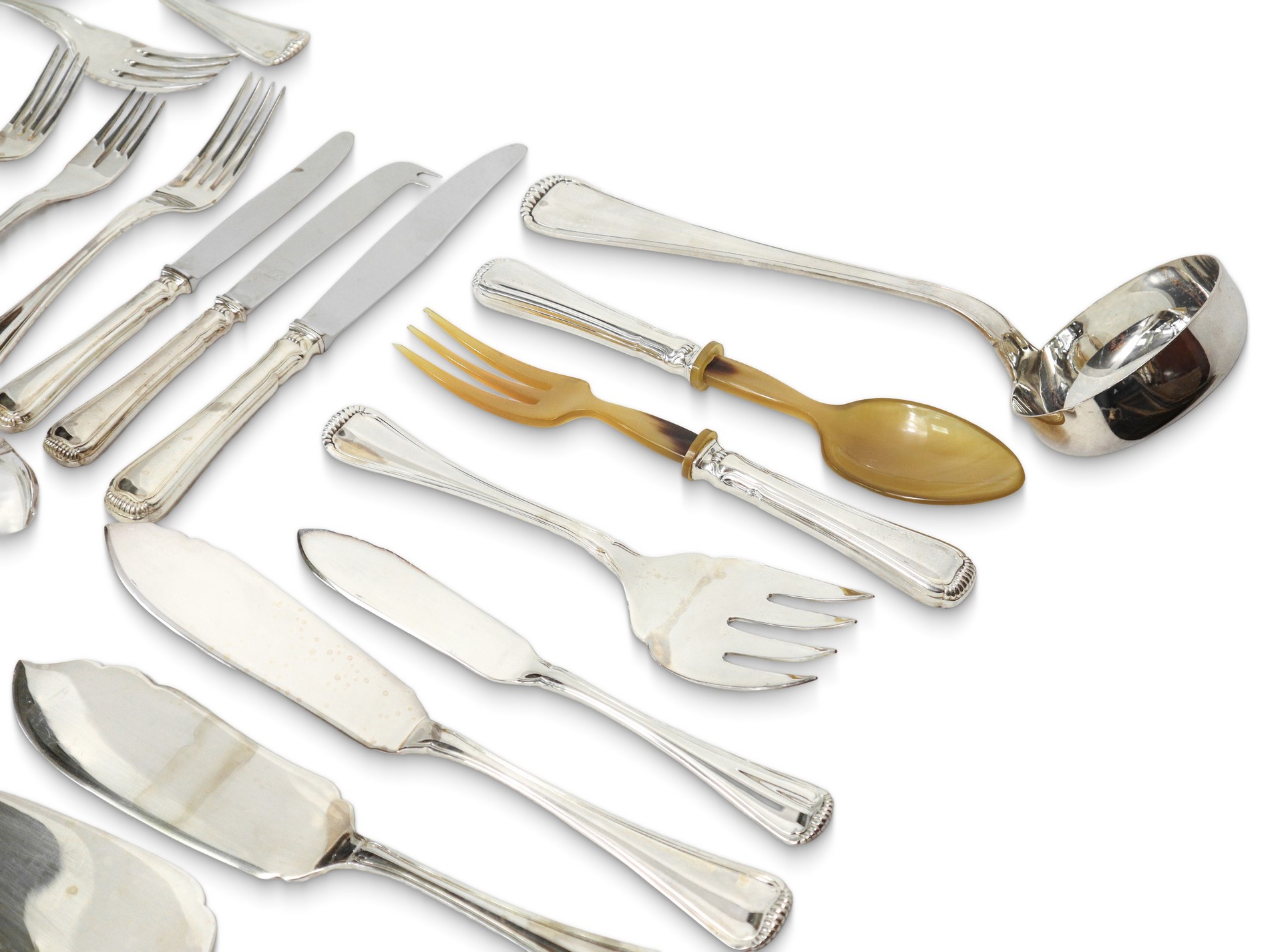 Argentieri Ricci - Servizio di posate da 12 in argento 800, marchio Argentieri Ricci Totale (esclusi coltelli): kg. 8,960 Punzone 800 e marchio della manifattura.