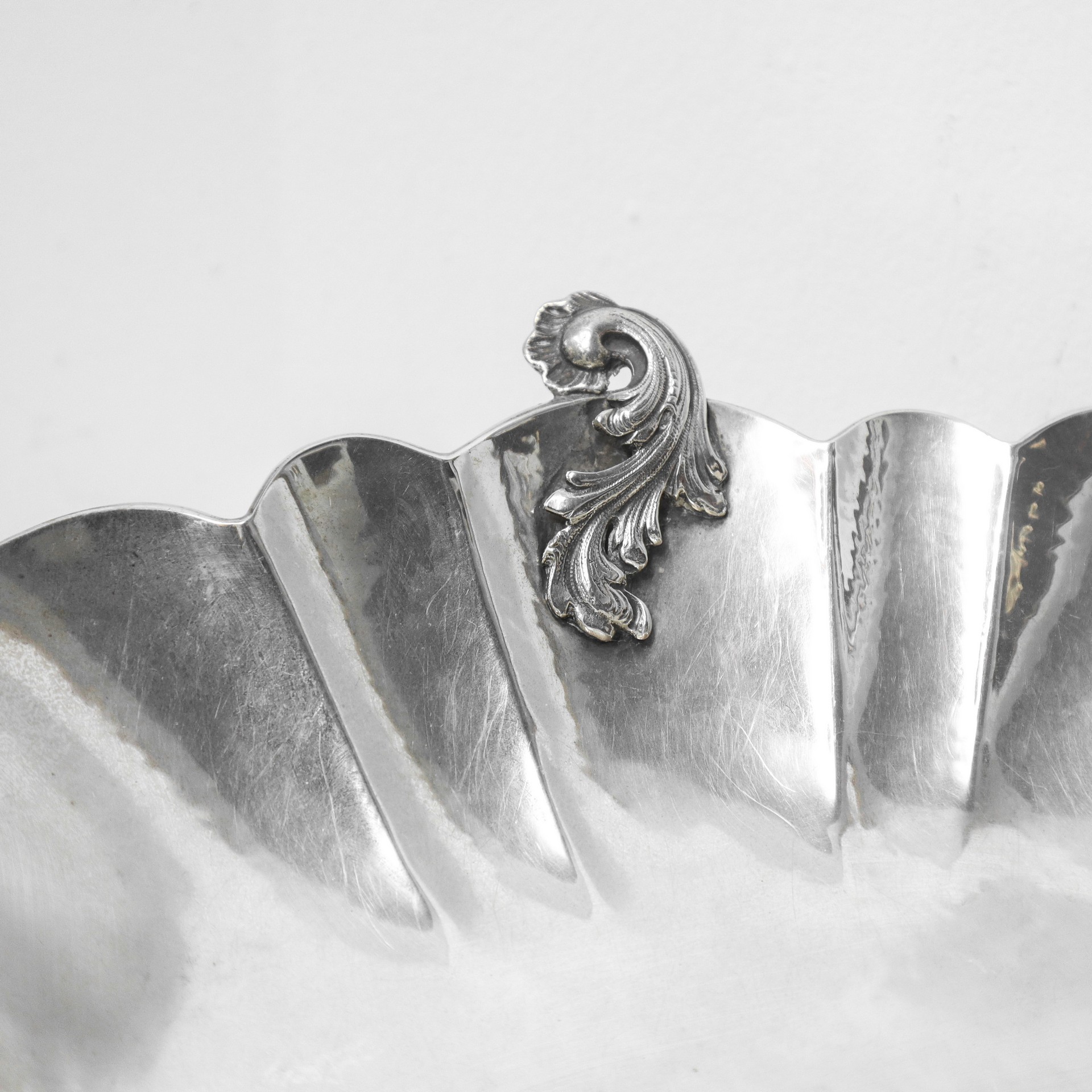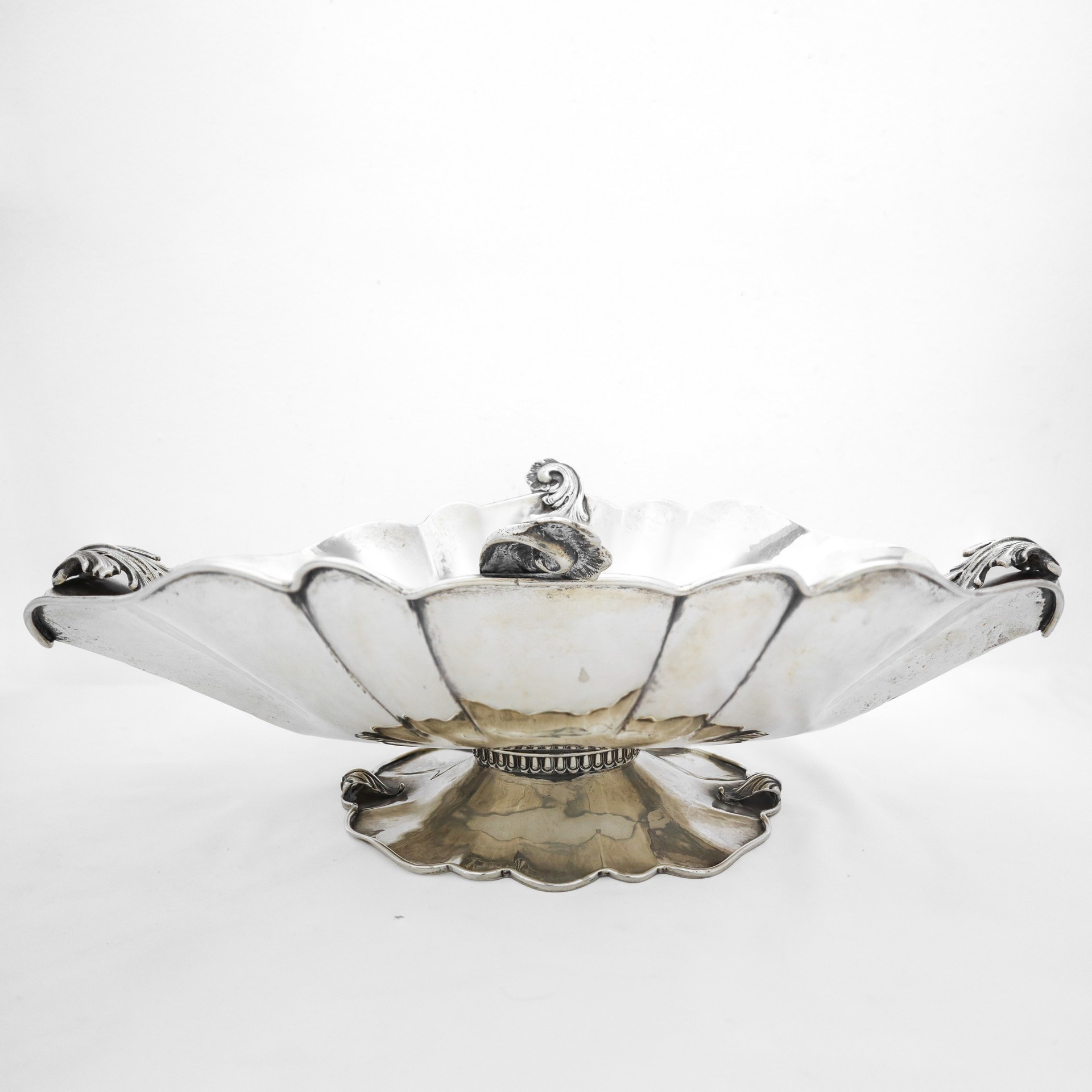 Ciatta centrotavola alzata ovale bordo smerlato e foglie d'acanto applicate gr. 760 h cm 13X36X26