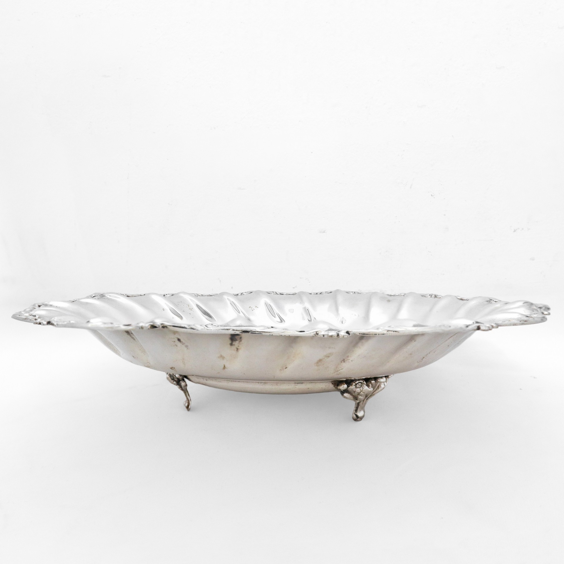 Alzata centrotavola in argento 800 con bordo smerlato gr.268 Mancanza di un piedino di sostegno