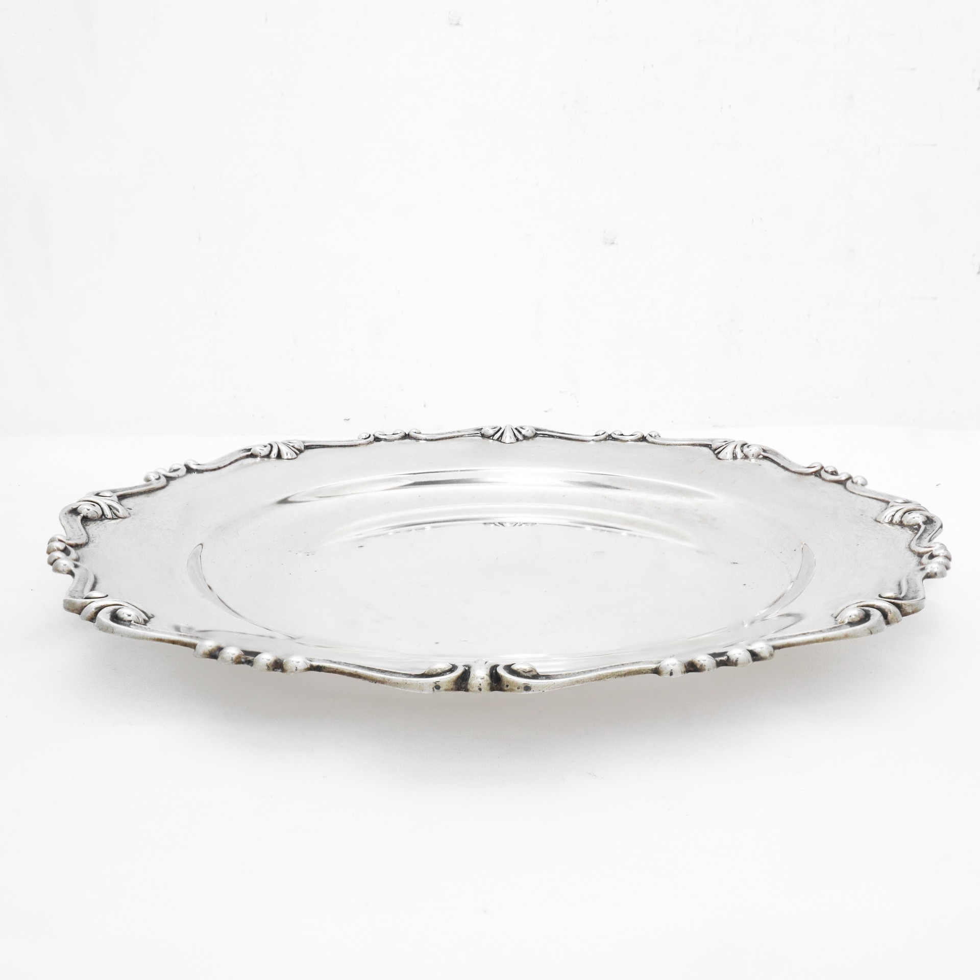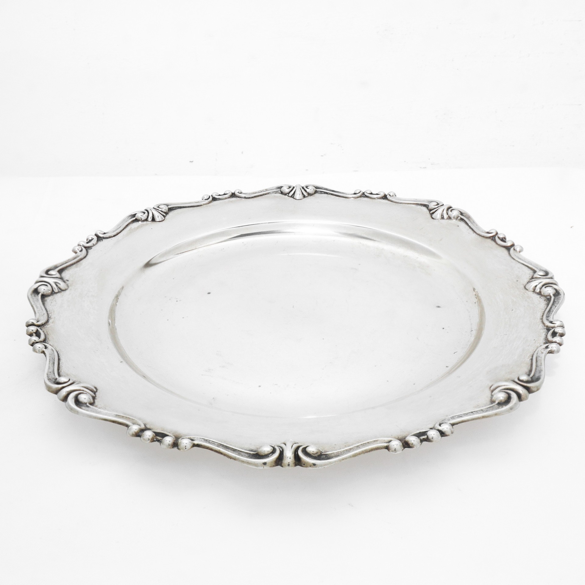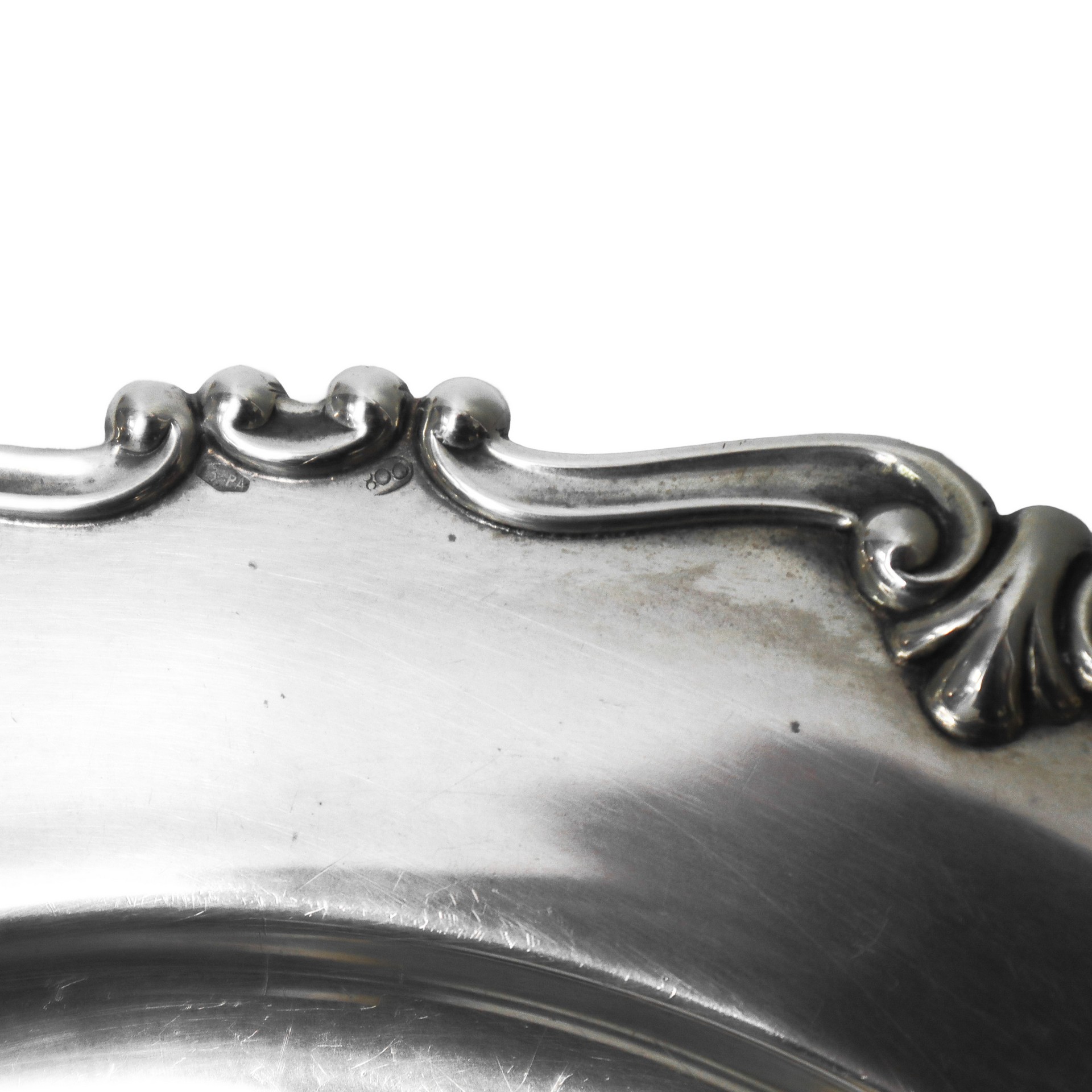 Piatto rotondo in argento 800 con bordo smerlato gr.294 diametro cm 25