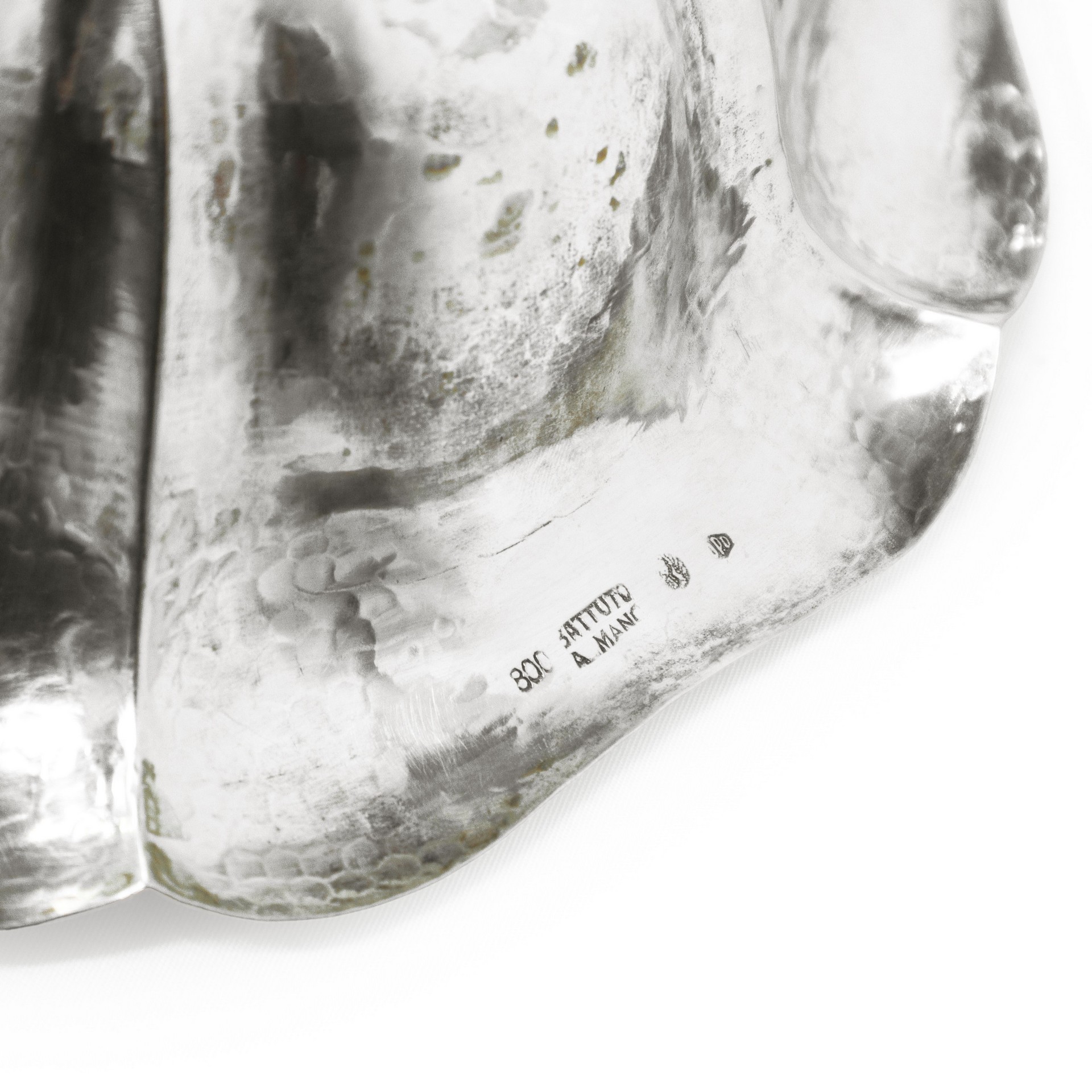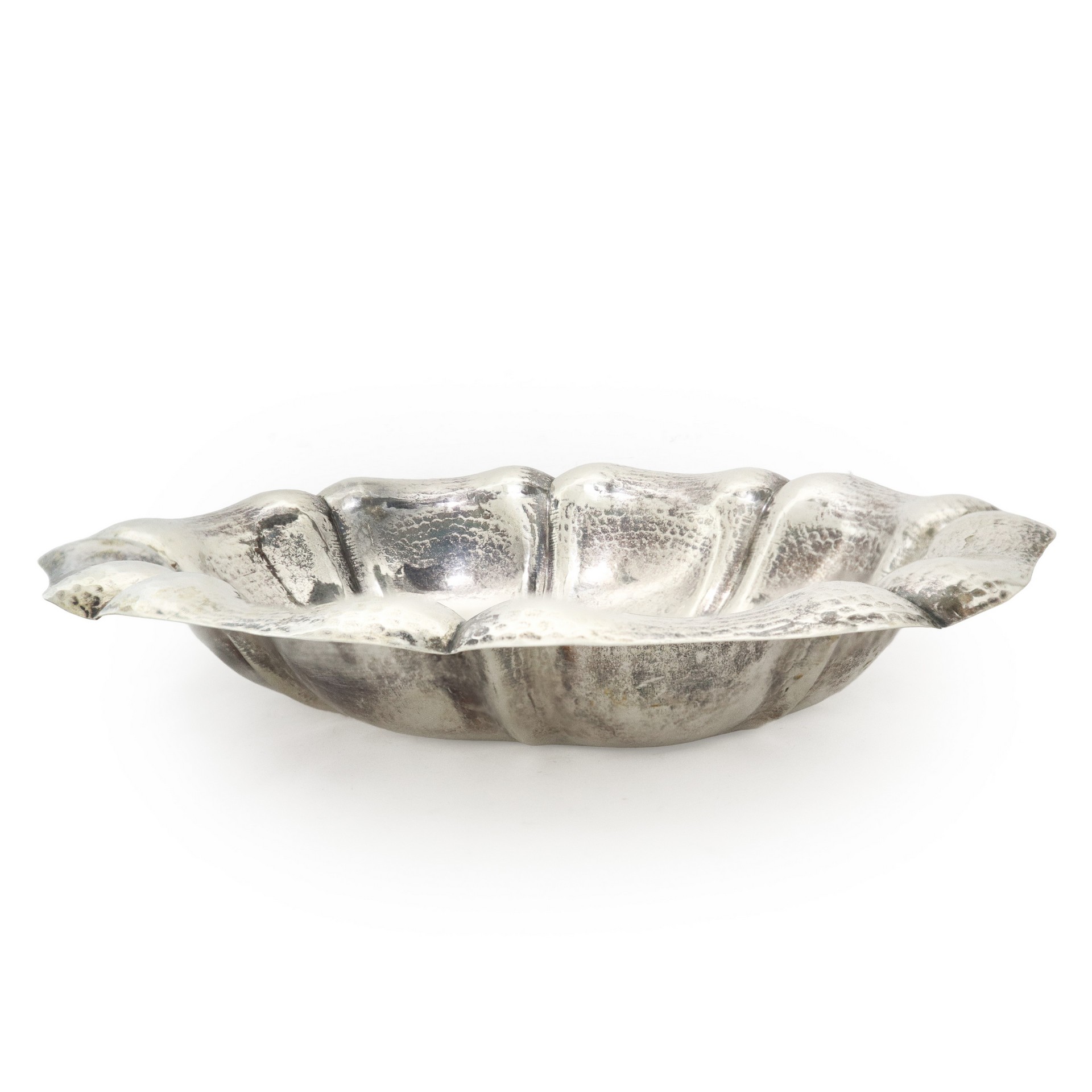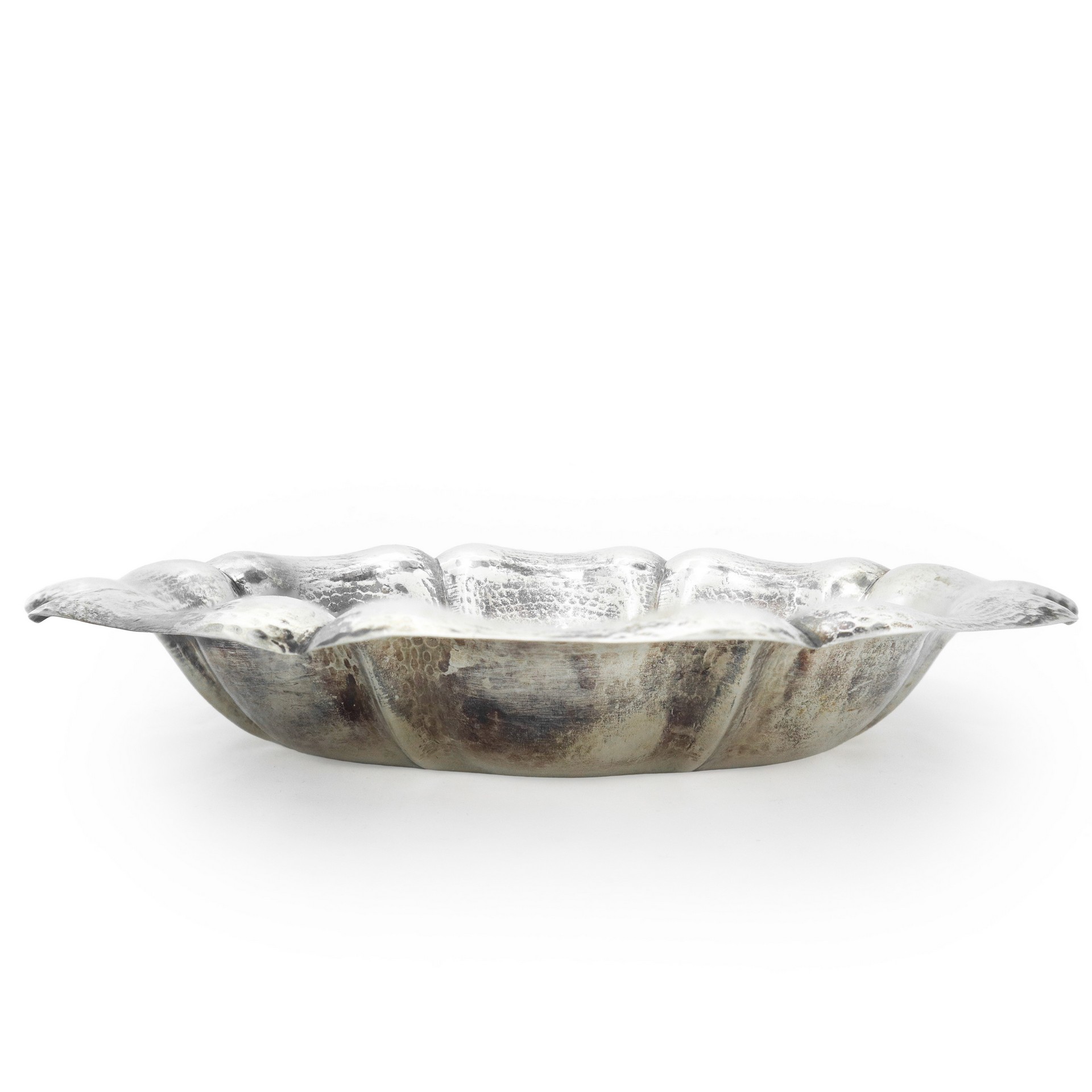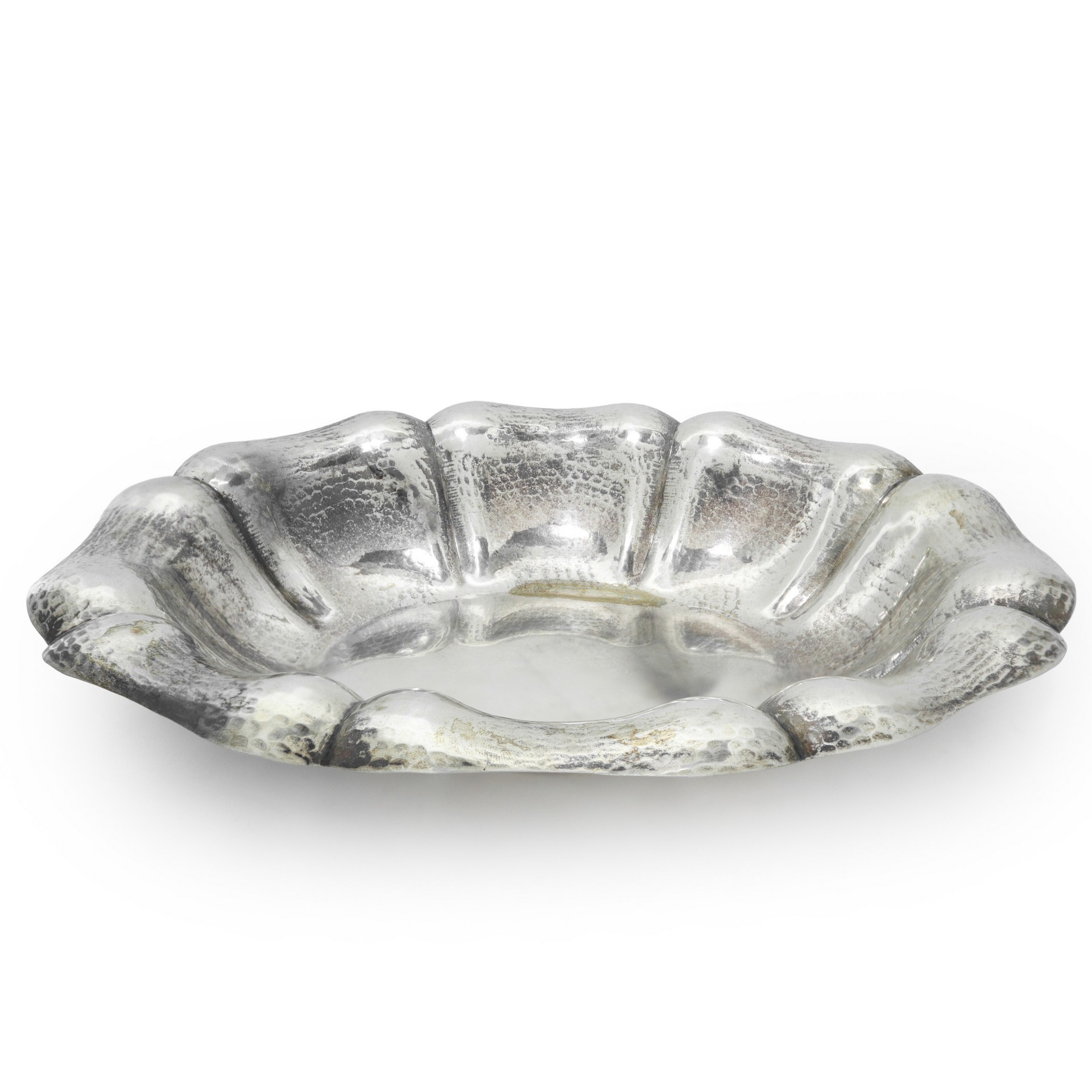 Vassoio portadolci ovale in argento 800 con bordo bulinato e lobato