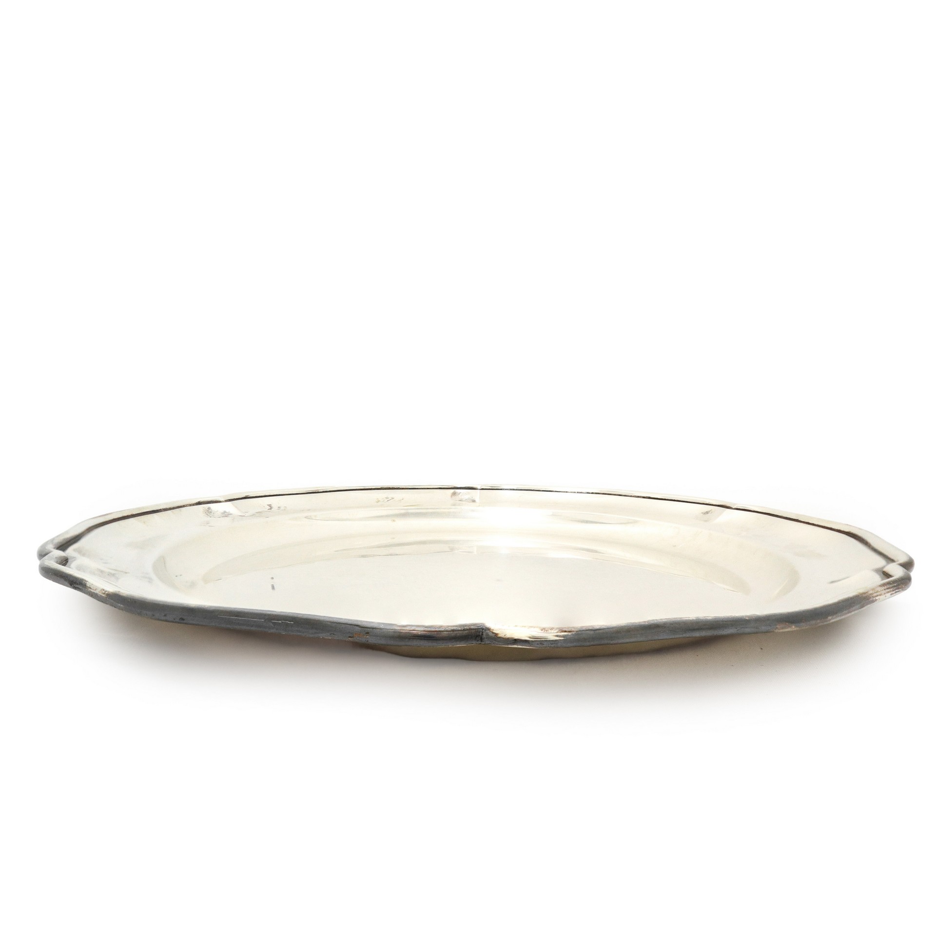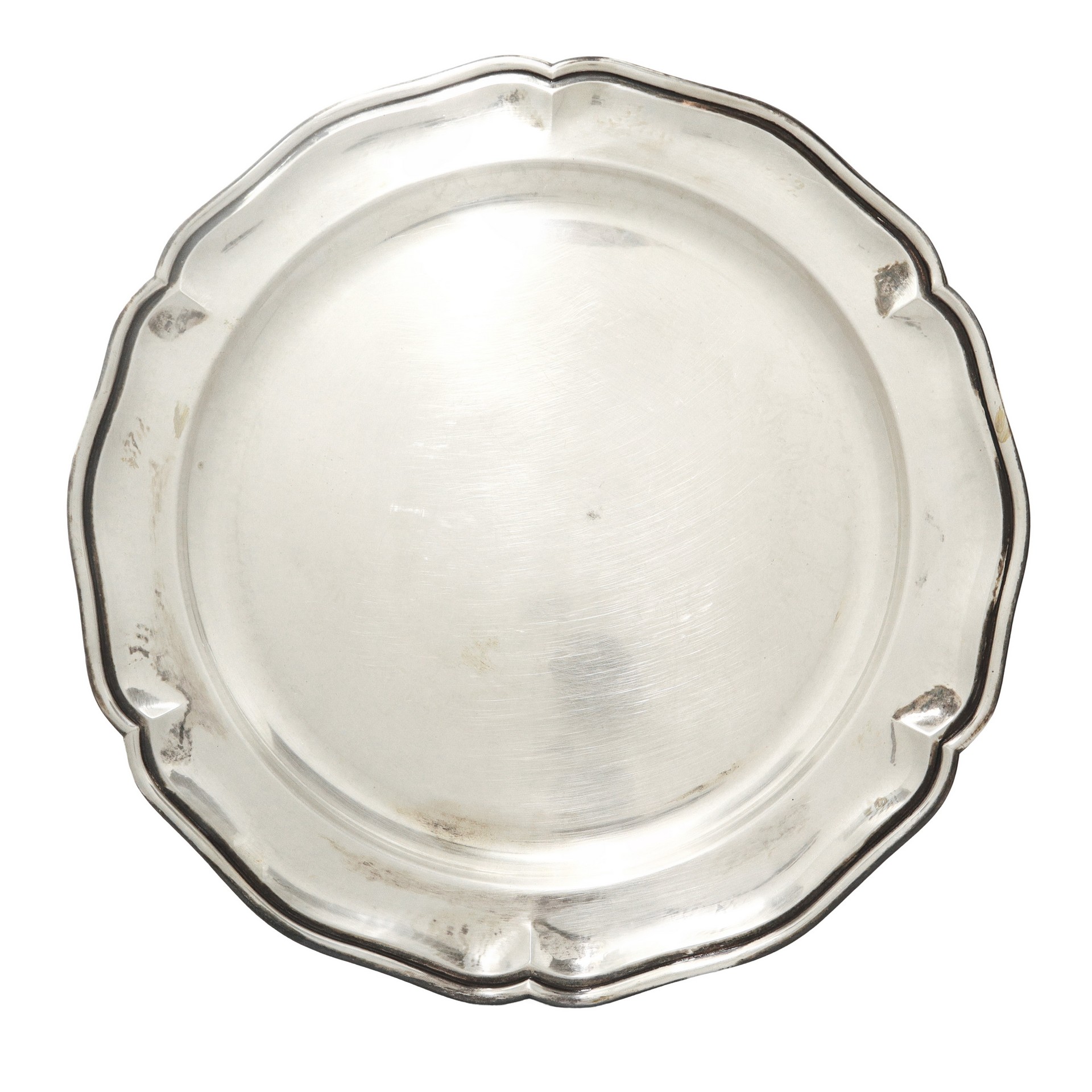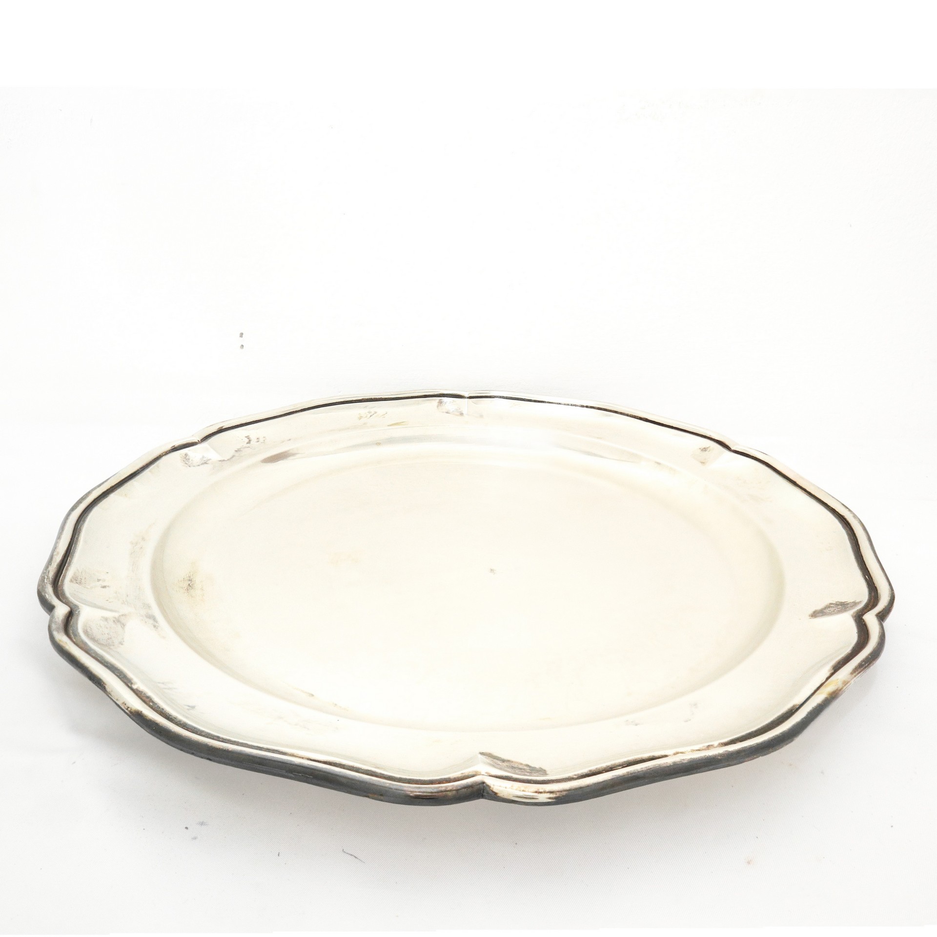 Vassoio rotondo in argento 800 con bordo smerlato gr.810 Presente incisione con nome precedente proprietario