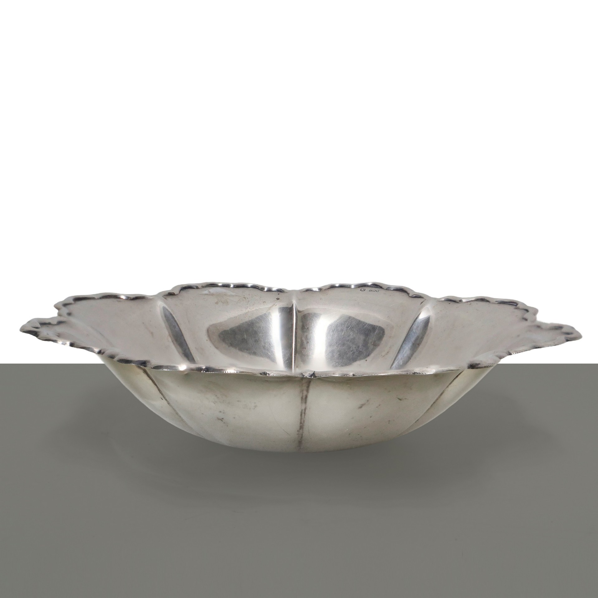 Piccola ciotola in argento 800 con bordo sbalzato