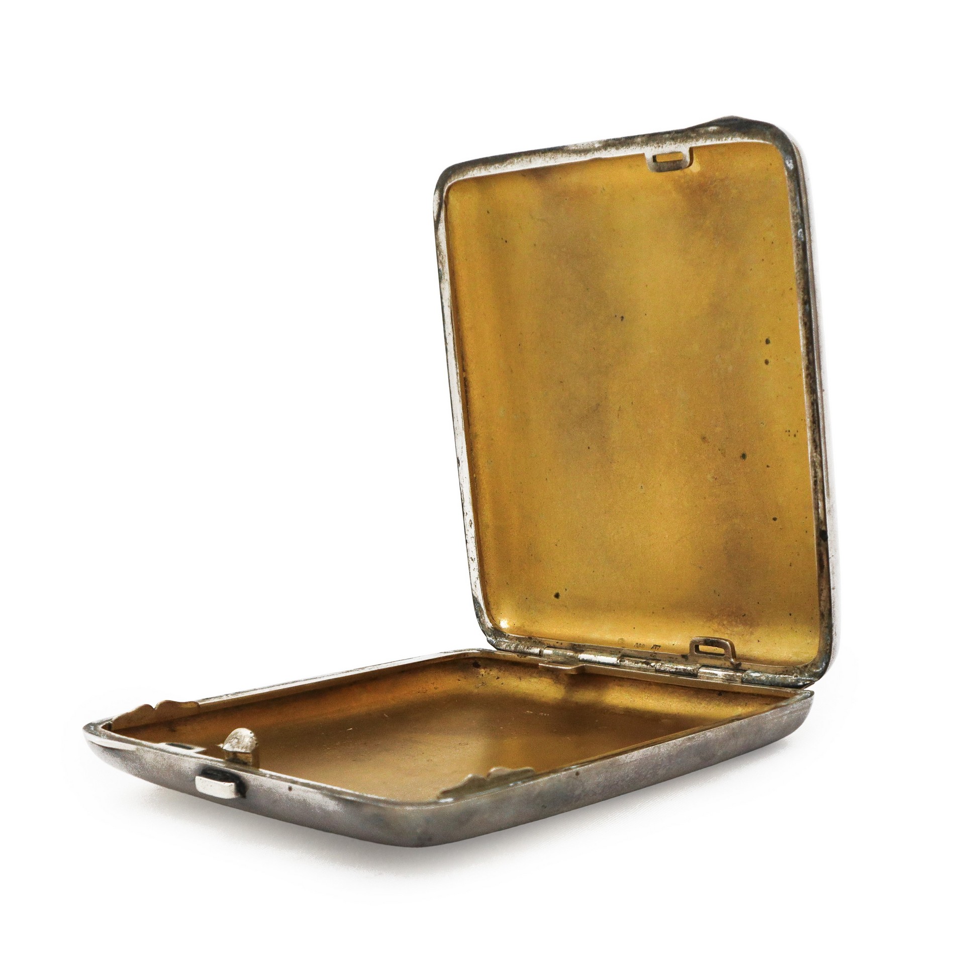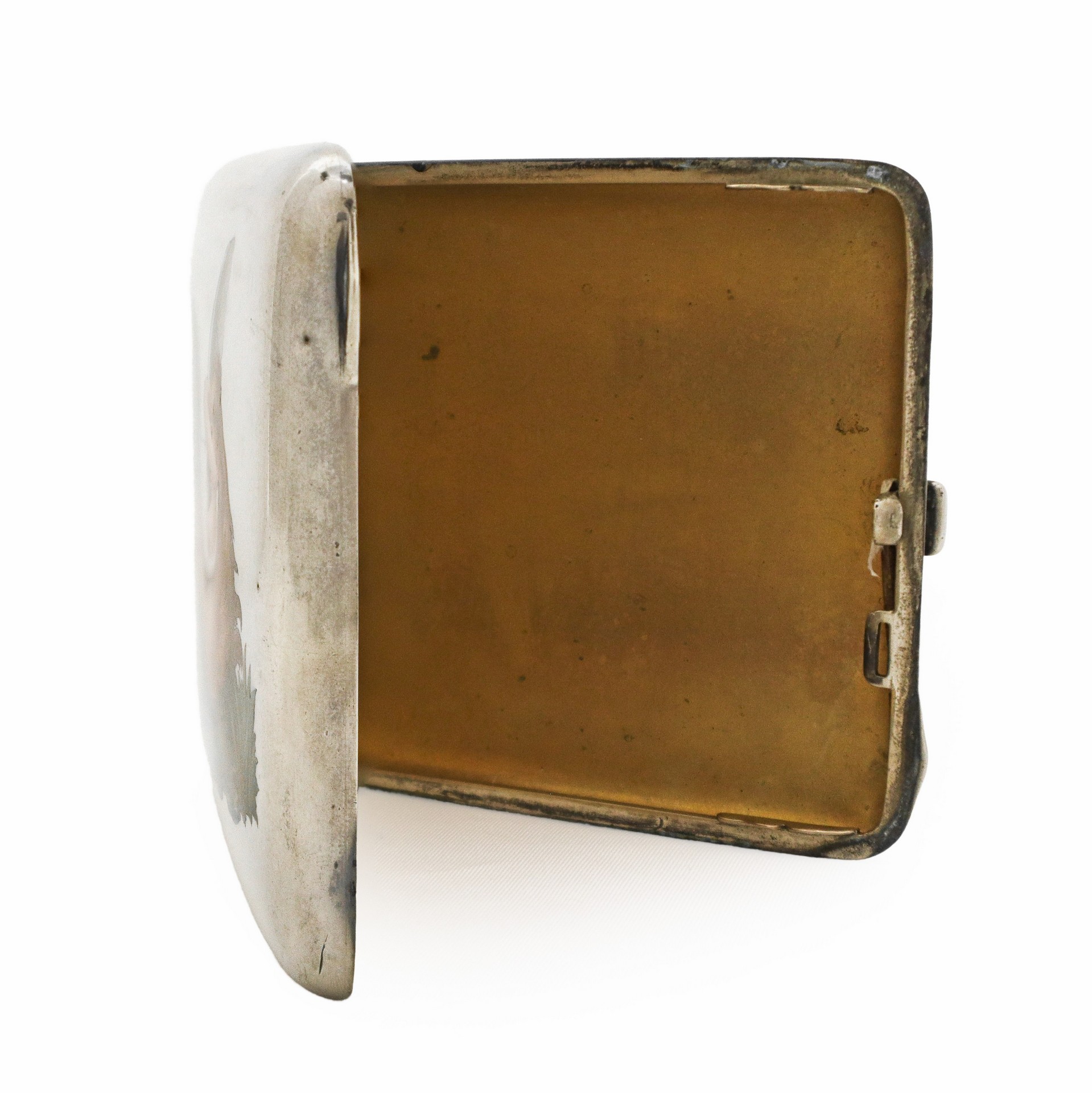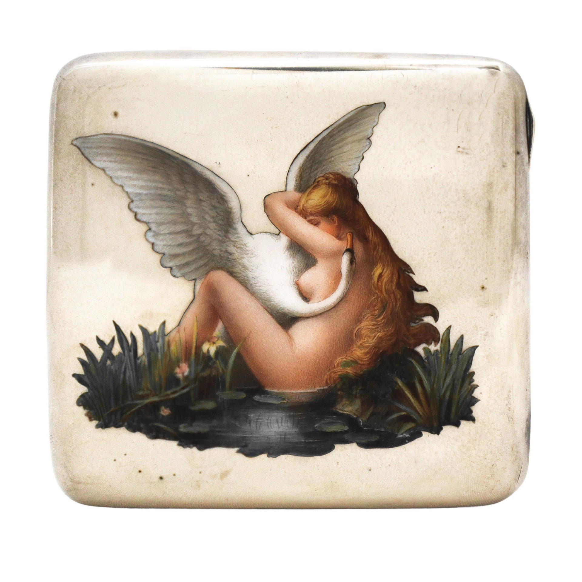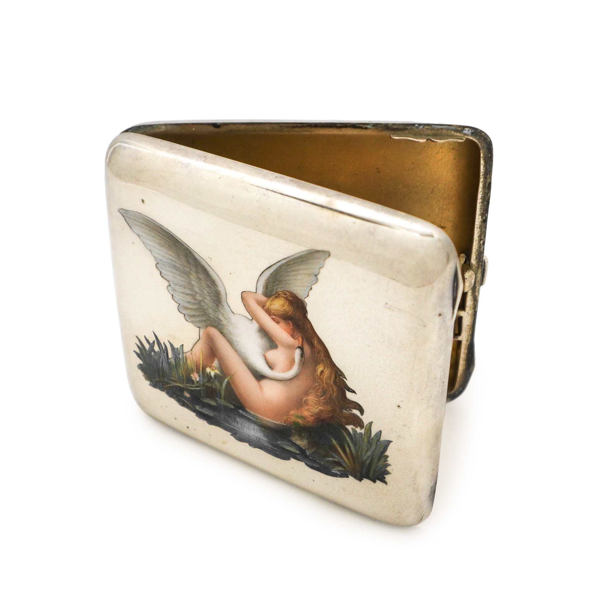 Portasigarette in argento 800 con raffigurata Leda e il cigno