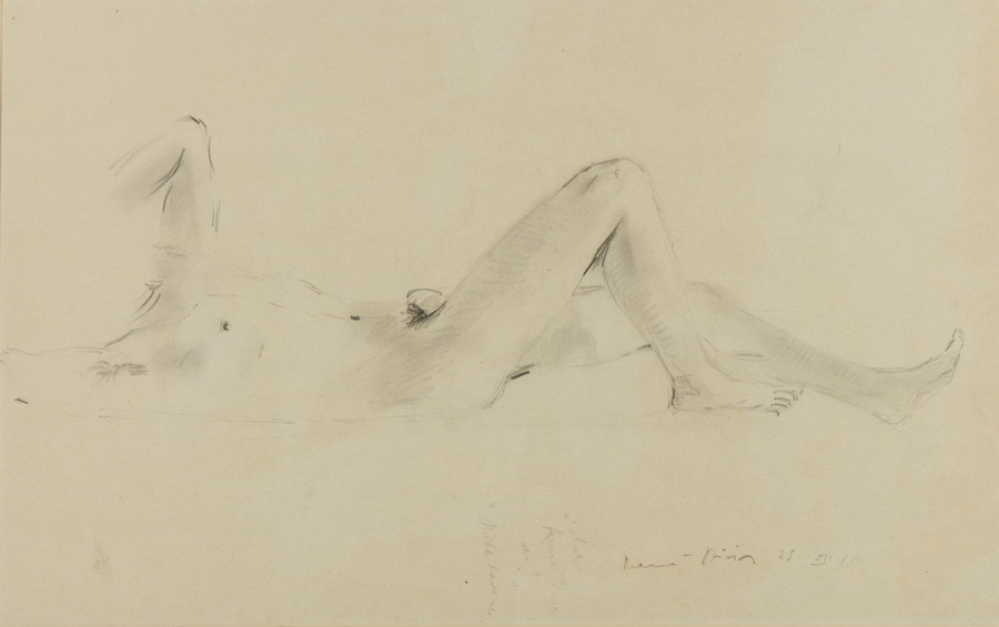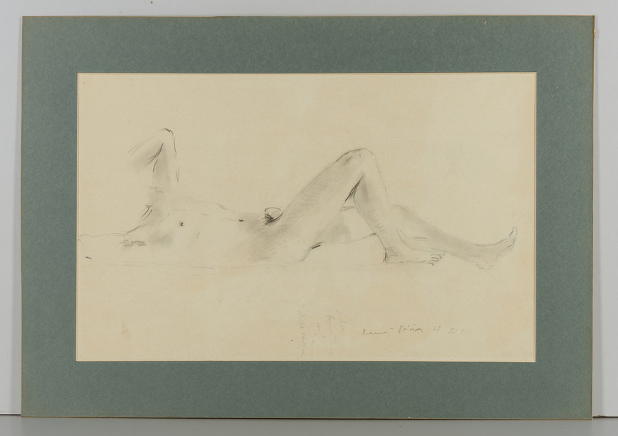 DE PISIS FILIPPO (1896 - 1956) NUDO DISTESO (RENE'). 1936. Matita su carta. Cm 54,00 x 36,00. firma e data