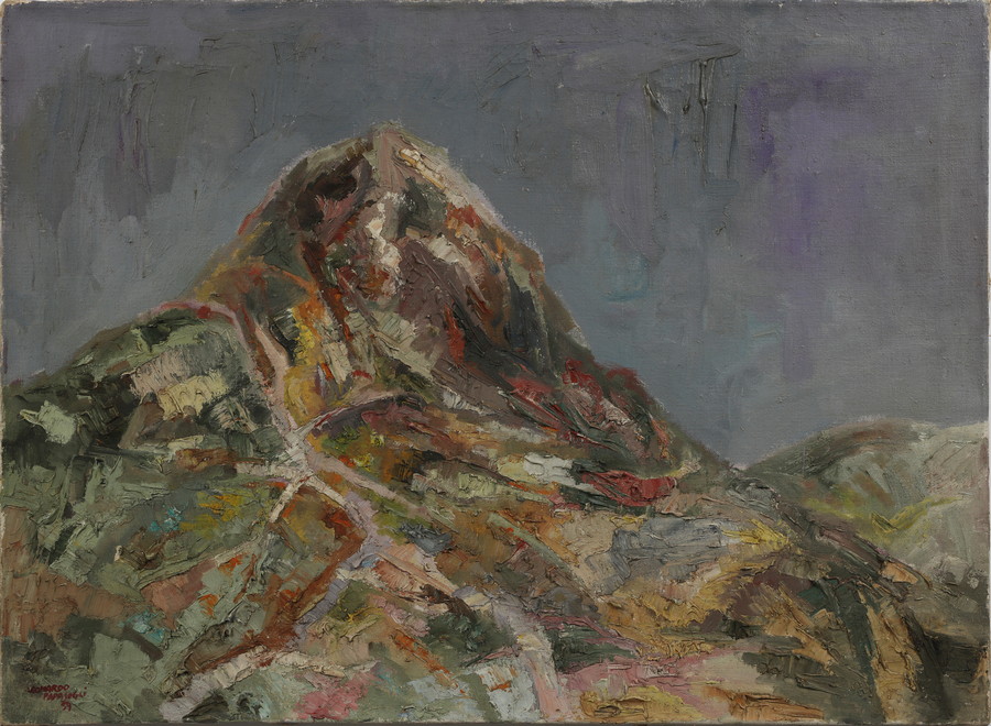 PAPPASOGLI LEONARDO (n. 1929) MONTAGNE. 1969. Olio su tela. Cm 95,00 x 70,00. firma e data