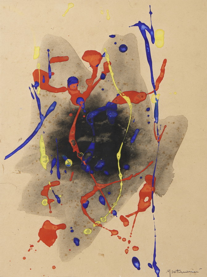 MONTANARINI LUIGI (1906 - 1998) SENZA TITOLO . 1986. tecnica mista su carta. Cm 30,50 x 40,50. firma