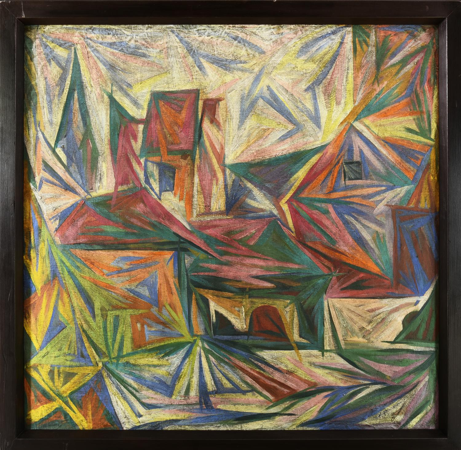 Natalia Goncharova (1881 - 1962) RAGGISMO, 1912 olio su tela, cm 96x97 firma...