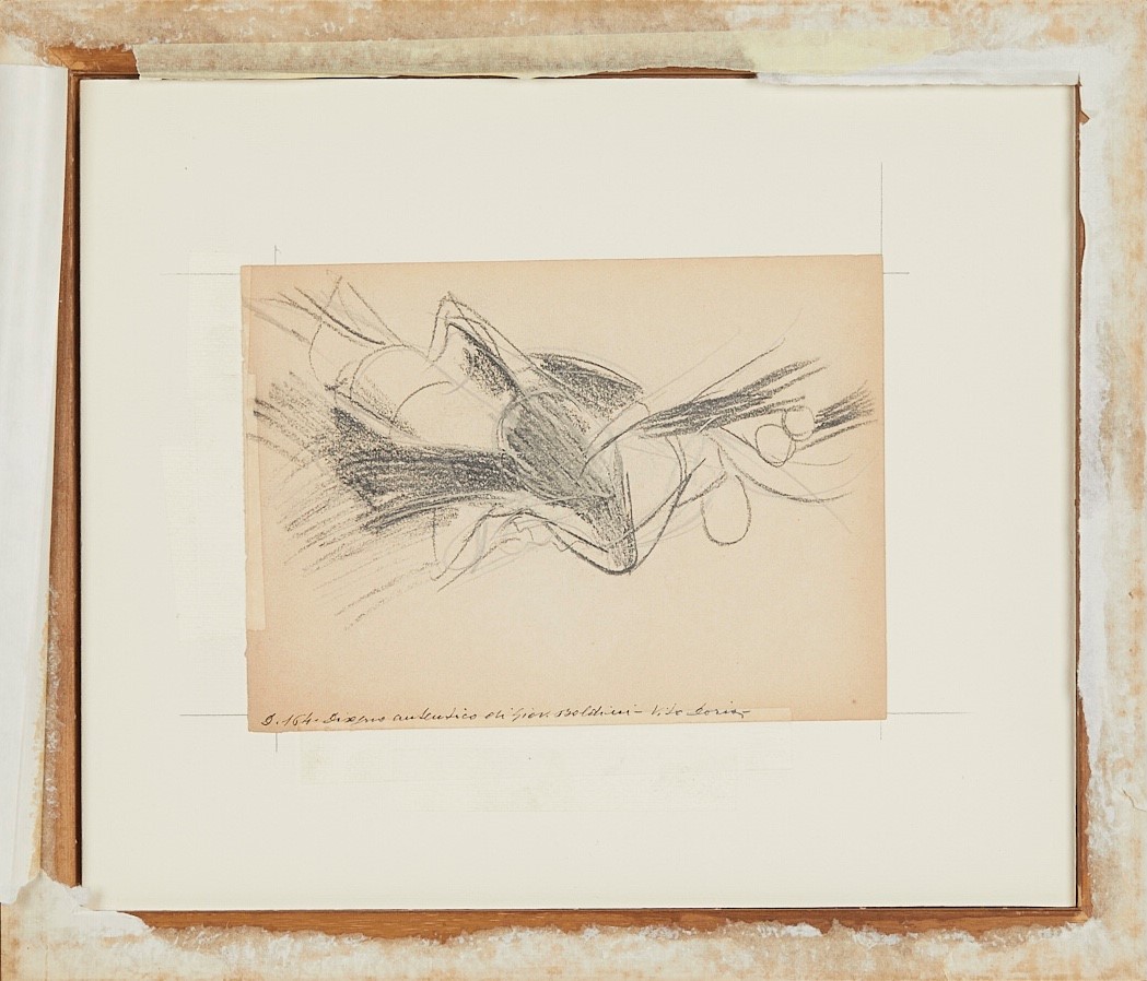 GIOVANNI BOLDINI (Ferrara 1842 - Parigi 1931) "Figura". Disegno su carta. Cm 19,1x14,5. Opera firmata in basso a destra Boldini. Al retro reca scritta per autentica con numero di inventario a firma Vito Dorio. Opera rectoversa: presenta un altro disegno al retro.