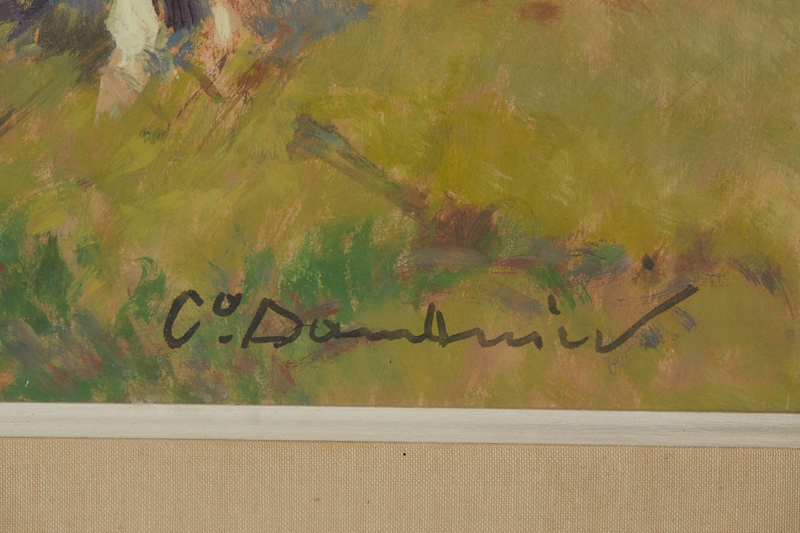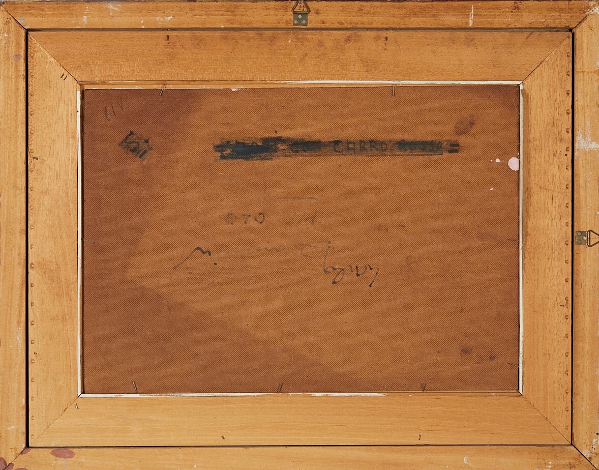 CARLO DOMENICI (Livorno 1897 - Portoferraio 1981) "Paesaggio con cavalli". Olio su faesite. Cm 35x50. Opera firmata in basso a destra C. Domenici. Al retro opera firmata Carlo Domenici.