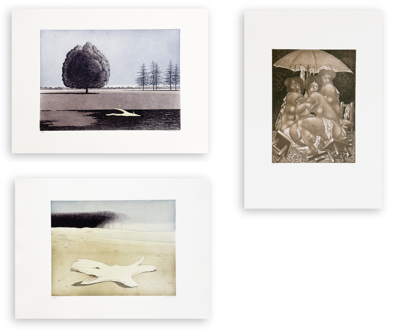 2 Acqueforti di Gino Guida e 1 acquaforte di Amerigo Tot