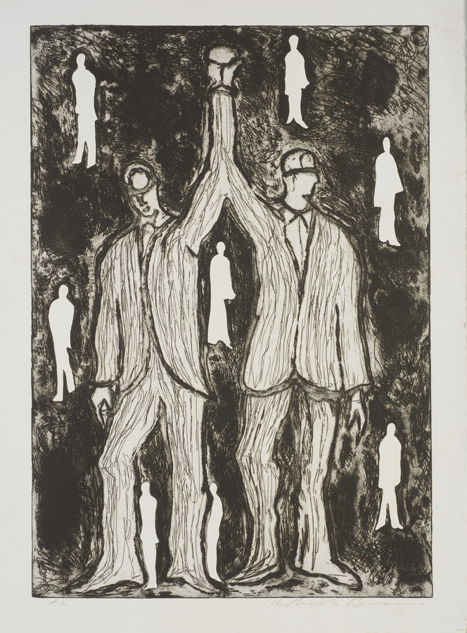 BARNI ROBERTO (n. 1939) VINCITORI E VINTI. Acquaforte e acquatinta. Cm 56,00 x 75,50. firma e tiratura a matita, es. p.a