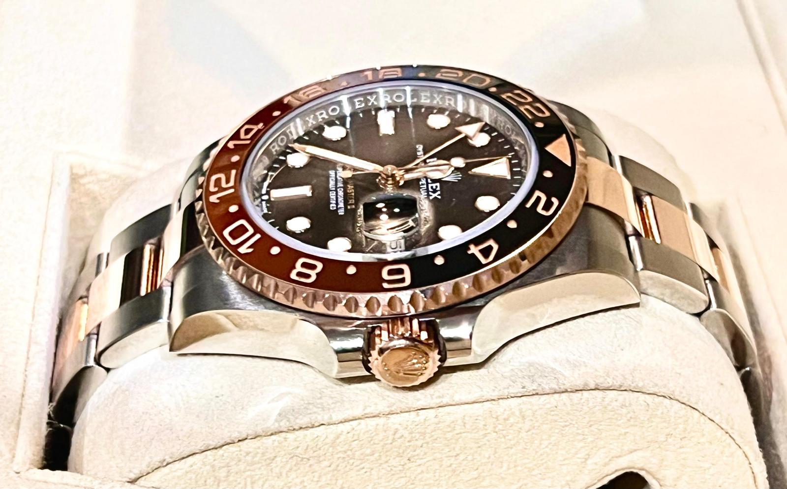 Marca Rolex Modello (Orologio) GMT-Master II Numero di referenza 126711CHNR Carica Automatico Materiale della cassa Oro/Acciaio Materiale cinturino Oro/acciaio Anno di produzione 2019 anno approssimativo Condizione Usato (Ottimo) L'articolo presenta segni di usura lievi, come ad esempio graffi leggeri, ma non percepibili al tatto. Corredo documenti originali, no box, la scatola è utilizzata solo per le foto ma non in vendita Carica Automatico Materiale della cassa Oro/Acciaio Diametro 40 mm Impermeabile 10 ATM Materiale lunetta Ceramica Vetro Vetro zaffiro Quadrante Nero Numeri sul quadrante Senza numeri Cinturino Materiale cinturino Oro/acciaio Colore cinturino Oro/acciaio Chiusura Déployante Materiale chiusura Oro/Acciaio - COMMISSIONE D’ASTA 25%