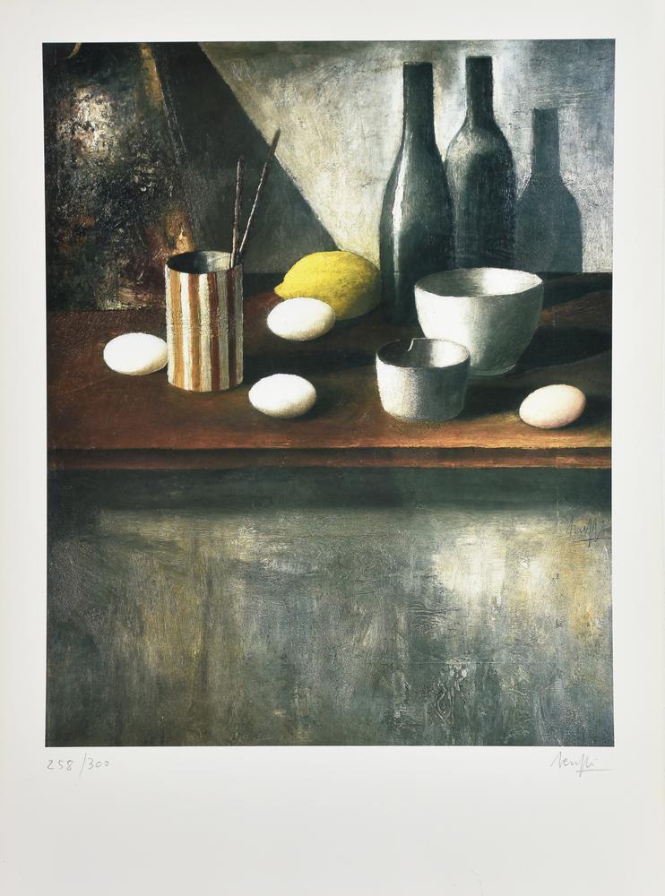 Marcello Scuffi NATURA MORTA CON LIMONE E UOVA litografia su carta, cm...