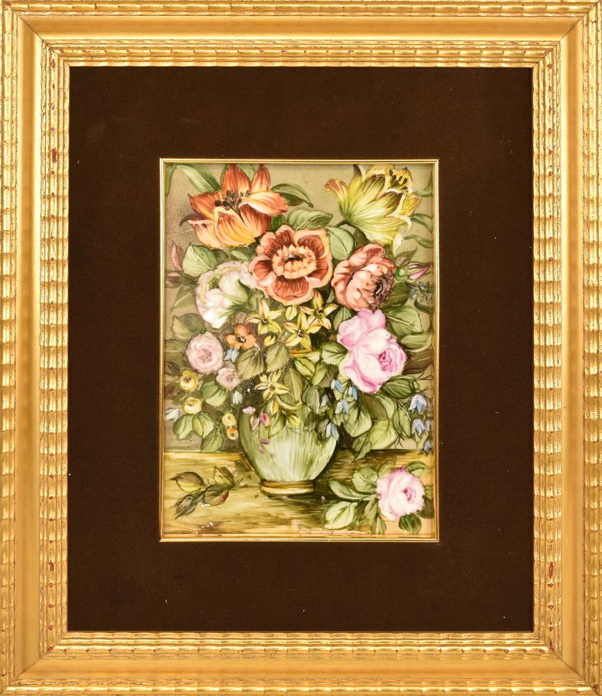Paola Fenoglio VASO DI FIORI olio su ceramica invetriata, cm 24,5x18 firma