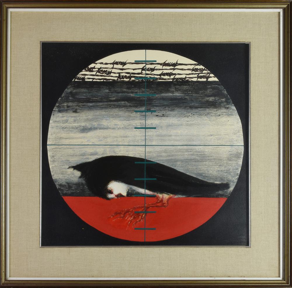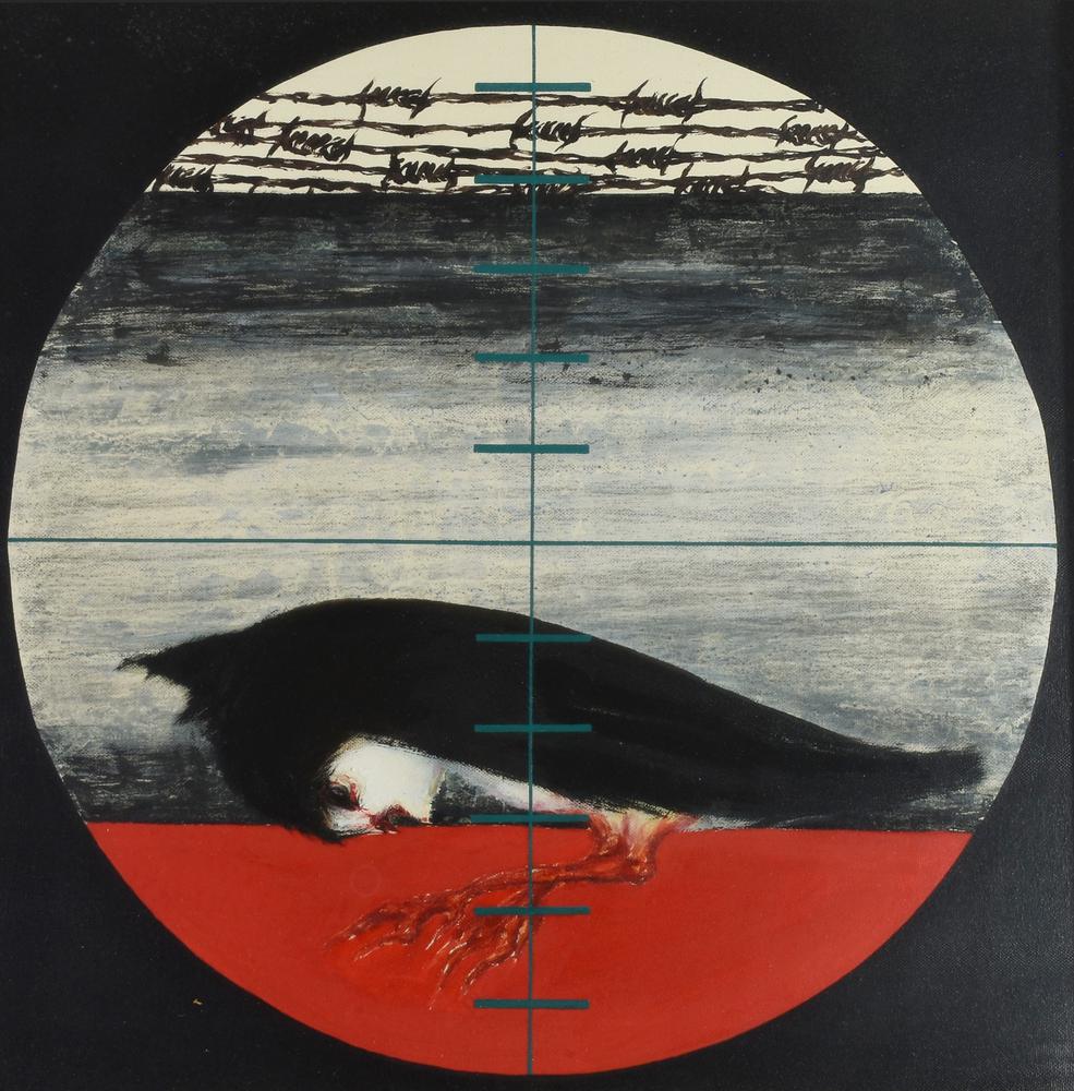 Gino Baglivo IL BERSAGLIO olio e acrilico su tela, cm 50x50 sul retro: firma...