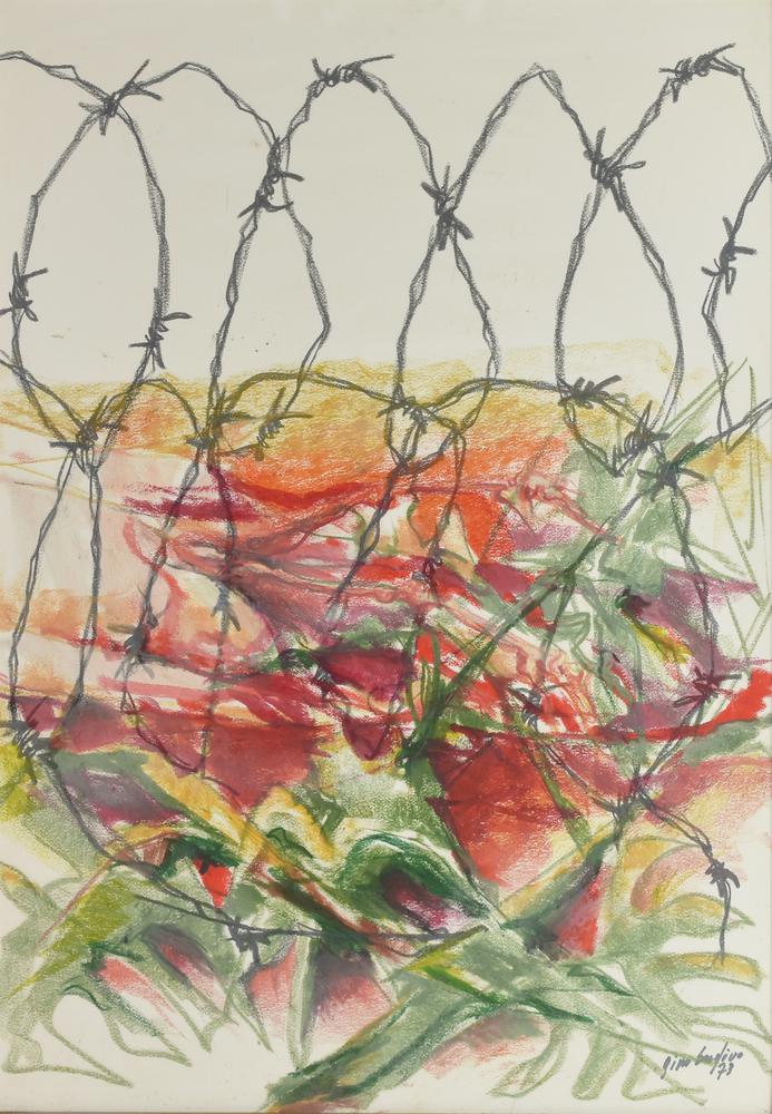 Gino Baglivo DIETRO LE FOGLIE, 1973 pastello grasso su carta, cm 68x48 firma...