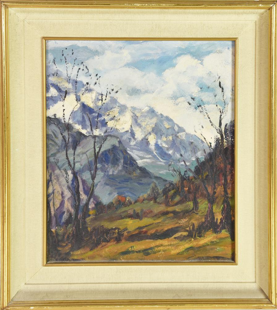 Ignoto PAESAGGIO MONTANO, 1962 olio su cartone, cm 40x33 sul retro: firma,...