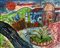 Ignoto PAESAGGIO URBANO olio su tela, cm 40x50 sul retro: firma e dedica ad...
