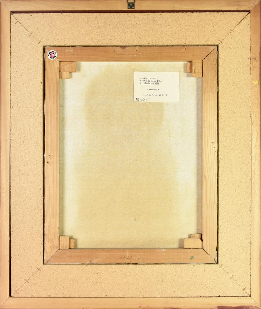 Franco Ravasi ANEMONI olio su tela, cm 50x40 firma sul retro: etichetta...