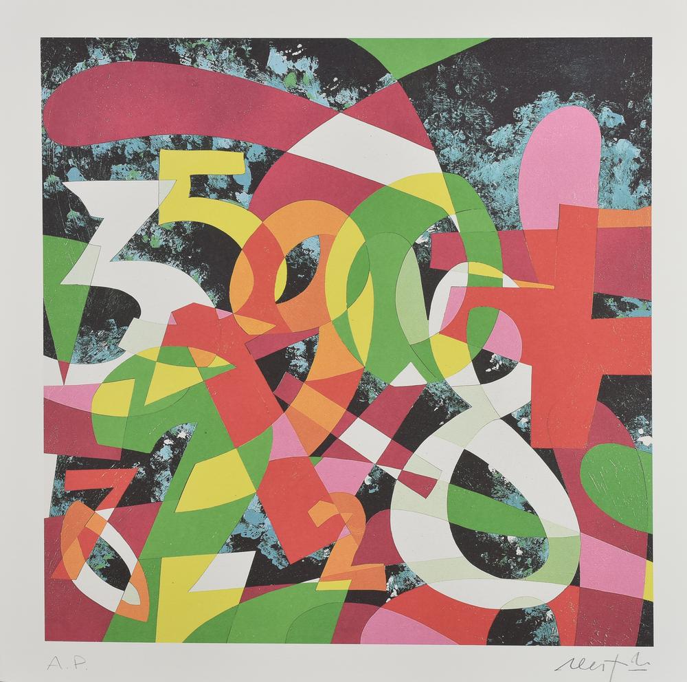 Ugo Nespolo INTRECCI litografia su carta acquerello, cm 48x48; es. A.P. firma...