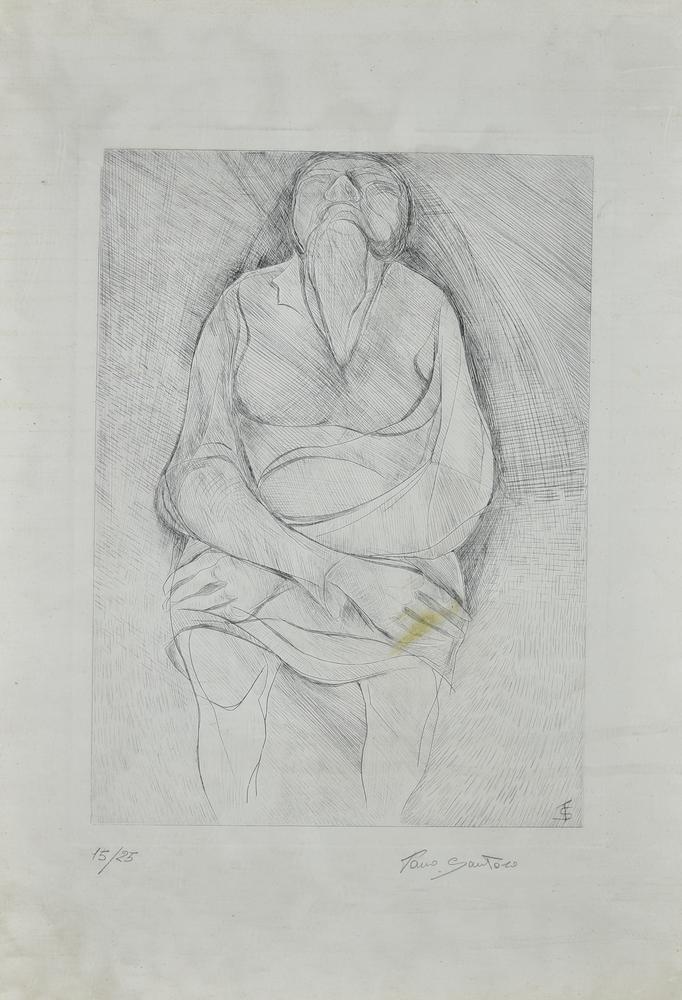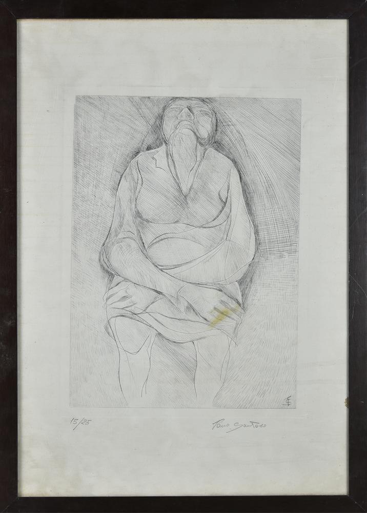 Lot 71 | Tano Santoro DONNA ASSISA puntasecca, cm 34x25,5, su foglio cm 49x34; es....