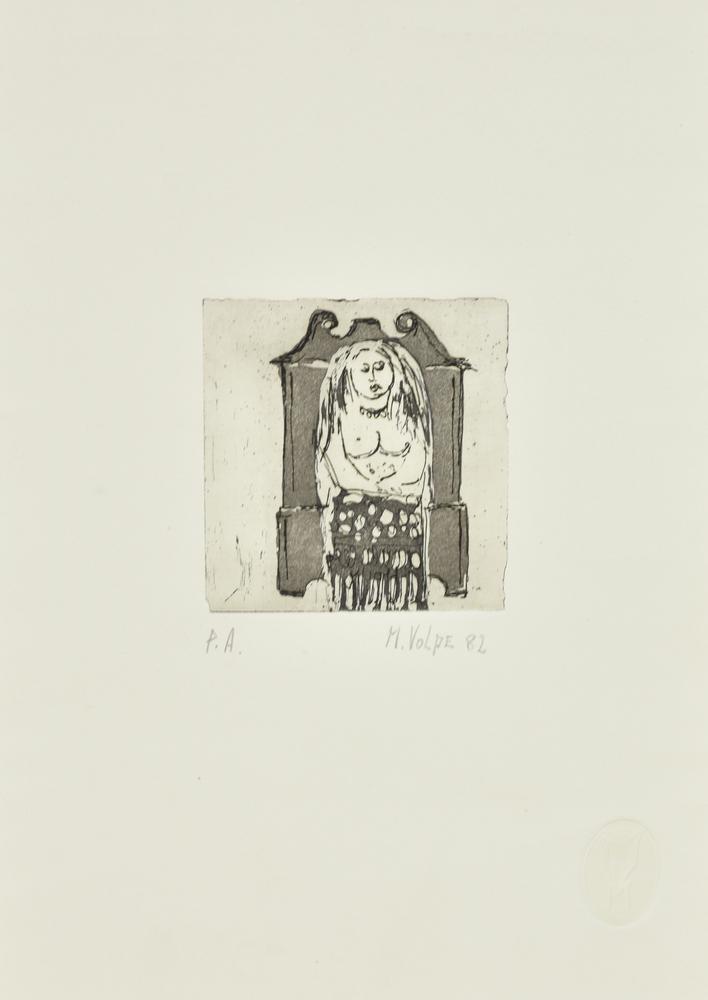Lot 125 | Michele Volpe DONNA SEDUTA incisione su carta, battuta cm 9,5x9, su foglio...