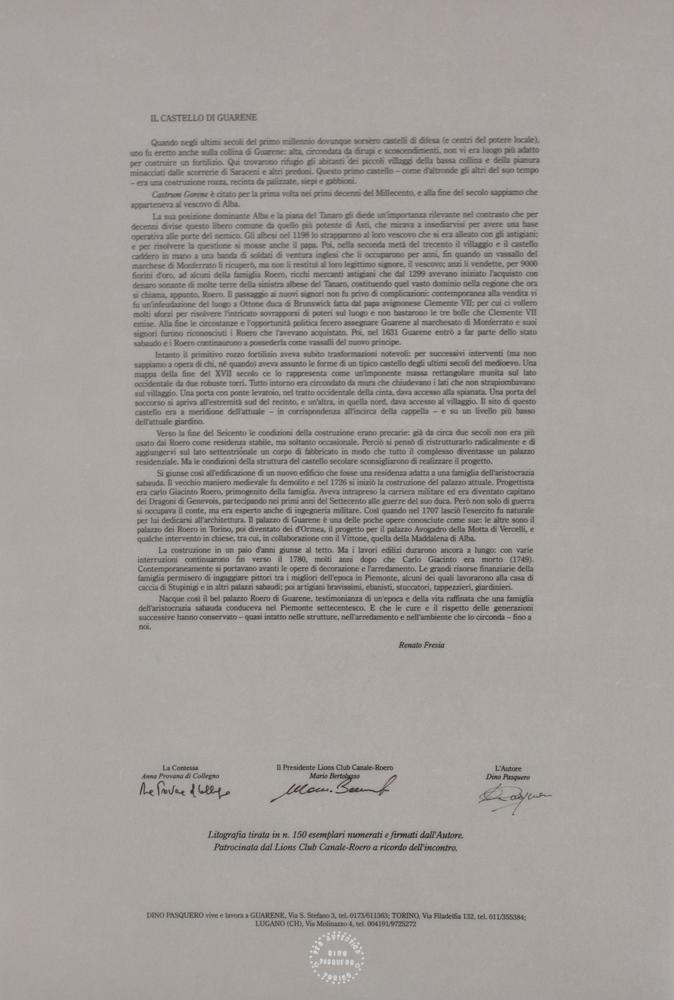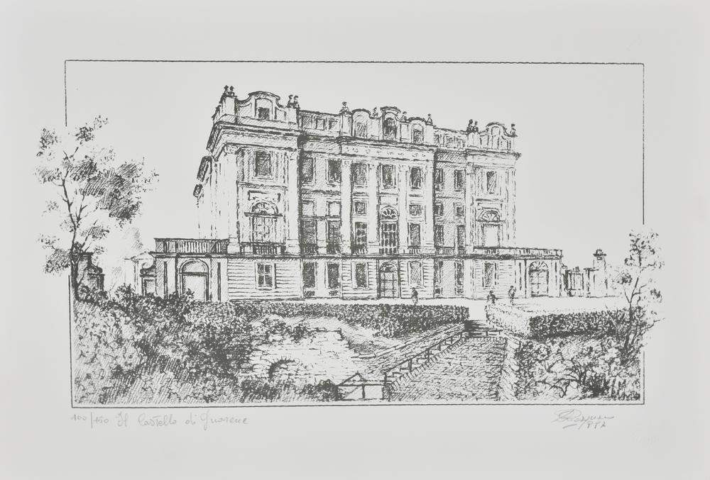 Dino Pasquero IL CASTELLO DI GUARENE litografia su carta, cm 35x50; es....