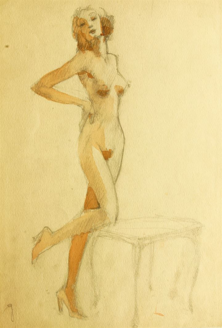 GOLIA (Eugenio Colmo) Torino 1885 - 1967 "Modella in posa" 1949 32x22,5...